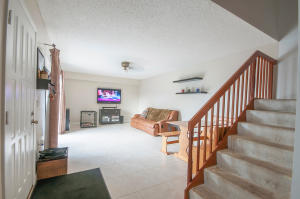 Spacious & clean 2/2.5 townhome in Village of Saldalwood Lakes. Great split bedroom floor plan with double master bedroom & baths. Porcelain tile on the main floor, beautiful wood in the bedrooms and new carpet on stairs. Full size washer/dryer. New paint. Hot tub negotiable. The best location in the community with peaceful water views from the townhome and nice sized grassy area. No parking lot views here! Kiddy park, tennis court, and pool also nearby. 2 parking spaces assigned to buyer. Water, sewer, trash & basic cable included in the hoa. Best priced townhome in Village of Sandalwood Lakes!