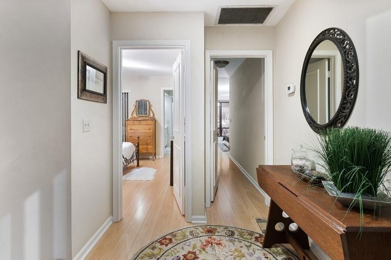 3 Bedroom 2.5 bath townhome w/1 car garage. 2015 ROOF w/warranty! Unique design features including: Ship lap wood accent walls w/floating staircase & wood burning fireplace flanked by clerestory windows. Cook's kitchen is open to dining room w/white wood cabinets, granite counters & stainless appliances. Neutral tile @ 1st floor w/convenient wet bar. Two entrances to screened patio with wide, garden views (no development is projected for this natural green space). Upstairs has a bright sky light, huge master bedroom w/vaulted ceiling, sitting area & balcony. 2nd & 3rd bedrooms have laminate flooring & share Jack/Jill Bath. Bathrooms feature white cabinetry and fixtures w/a soaking tub at the master bathroom. Sparkling community pool, picnic/BBQ area. 5 Minutes to 95 & A Rated Schools!