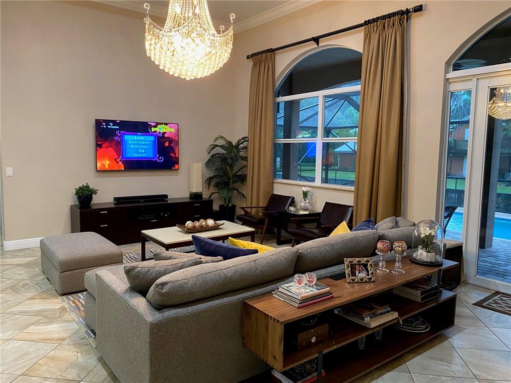 Spectacular 4 Bedroom, 3 Bath Pool Home located in Pine Island Estates. Newer home build in 2013 with many upgrades when purchased and after closing seller added about another $40,000 in upgrades. As you walk into the home you will love the open floorplan with porcelain tiles leading into the very large living room & salt water pool. Home features high decorative coffered ceilings, granite counter tops, 42 inch kitchen cabinets, stainless steel appliances & more Currently home is being used as a 3 bedroom, office and a large bonus room. Large master suite with 2 walk in closets & master bath also has a roman tub. Can easily be converted back to 5 Bedrooms.