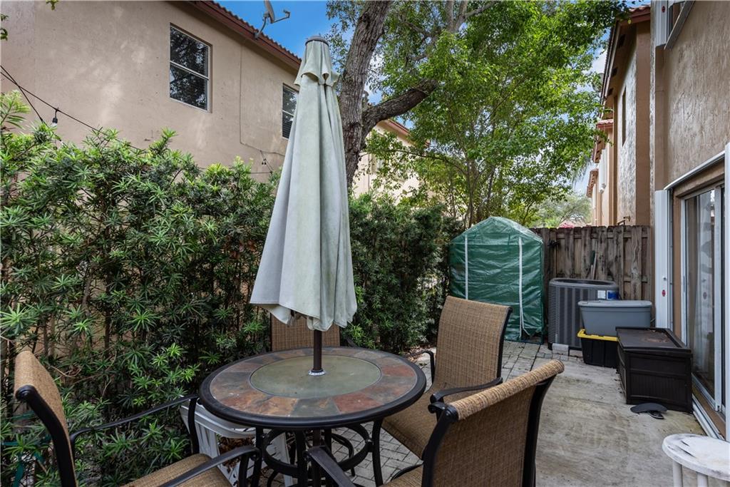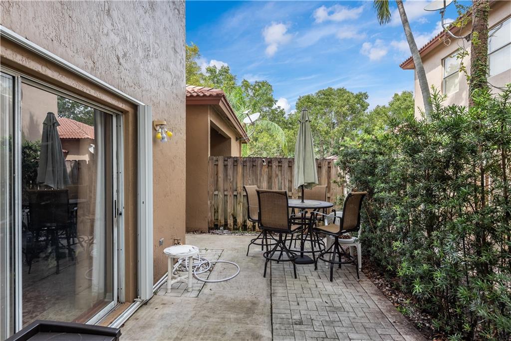 Guard Gated Community in one of the nicest locations in Weston. 3 bedrooms, 2 and 1/2 baths that spacious. Feels like a single family home. Community has wide streets, lush landscaping, community pool, gym, and not crowded. Large family room for entertaining. Eat in kitchen. Kitchen has pantry and L shaped for bar stools. Patio off Family room through sliders. Great spot for entertaining and grilling. Huge storage area on patio that feels like a mini garage. Half bath downstairs. Storage built under stairs. Newer plush carpeting on stairs and entire second story. Walk in closet in Master Bedroom. Accordion hurricane shutters. Ac is 4 years old. Roof original.