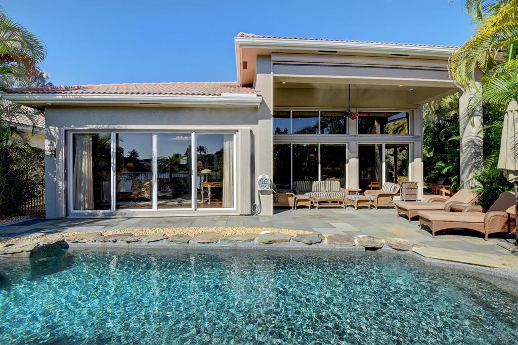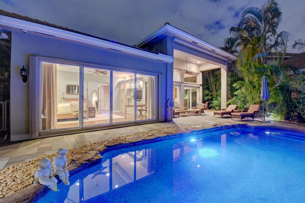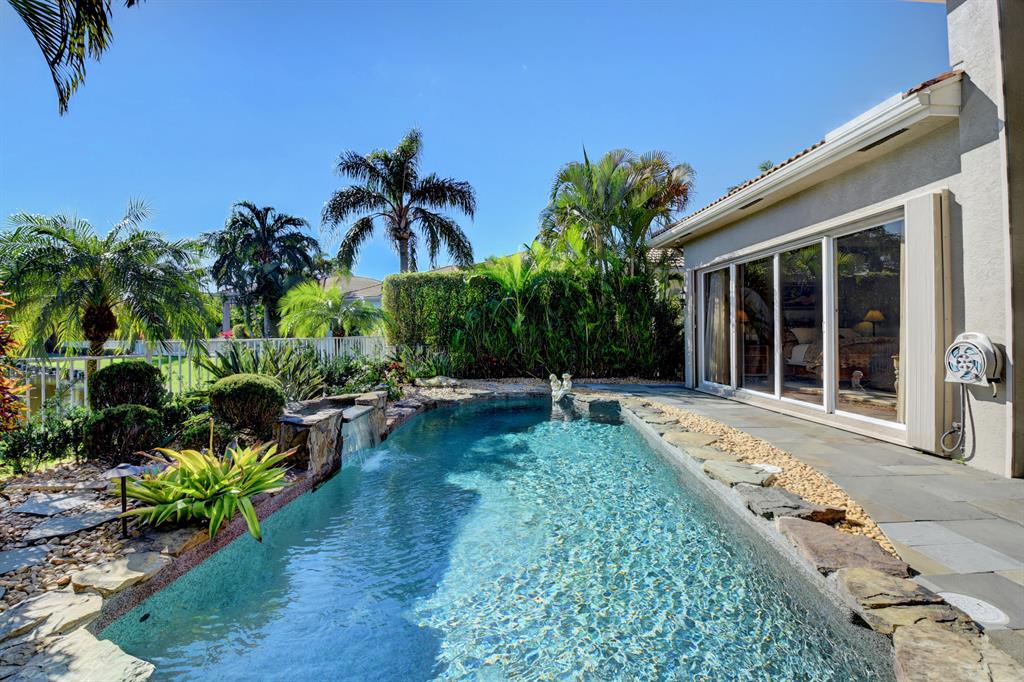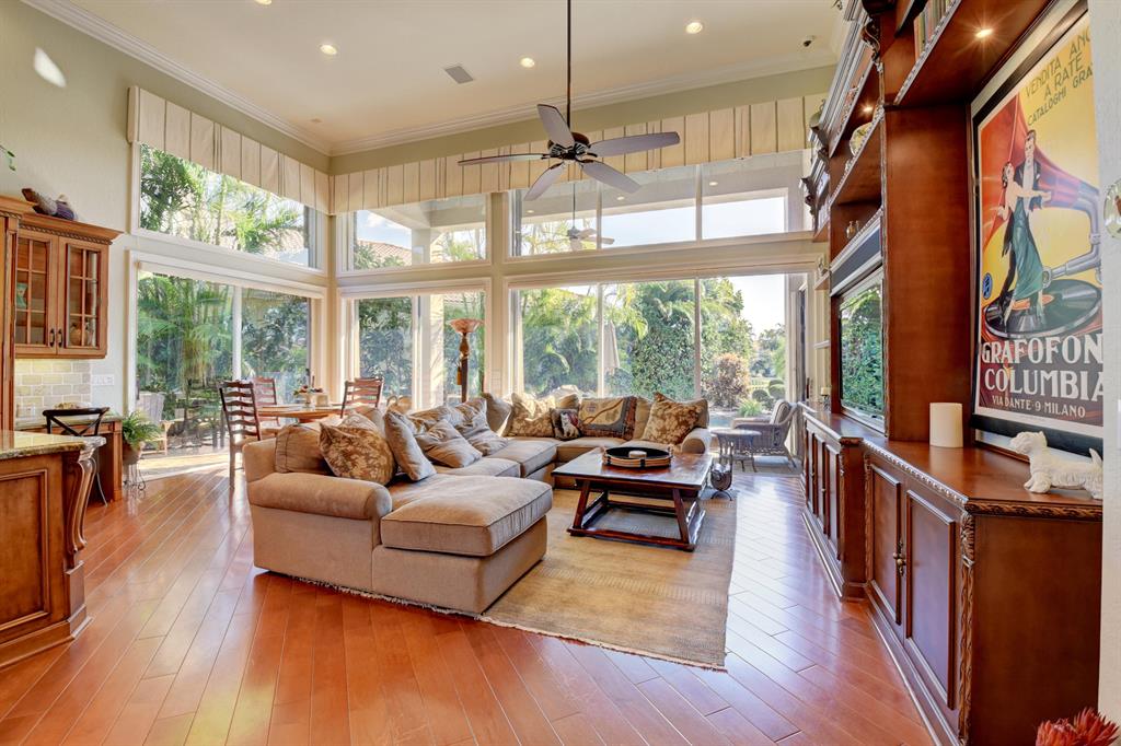Welcome to Woodfield Country Club. This rare 4 bedroom 3 bath home sits on an oversized lot with tremendous southern exposure lake views and lush sitting gardens. This open floor plan features stainless steel appliances including Miele double ovens, maple cabinets and granite counter tops. The home also has natural gas for cooking and hurricane shutters, natural gas generator, newly installed automated interior shades and automated screens for the patio area. The pool is heated with an auto fill. This is a must see home to experience what could be yours.