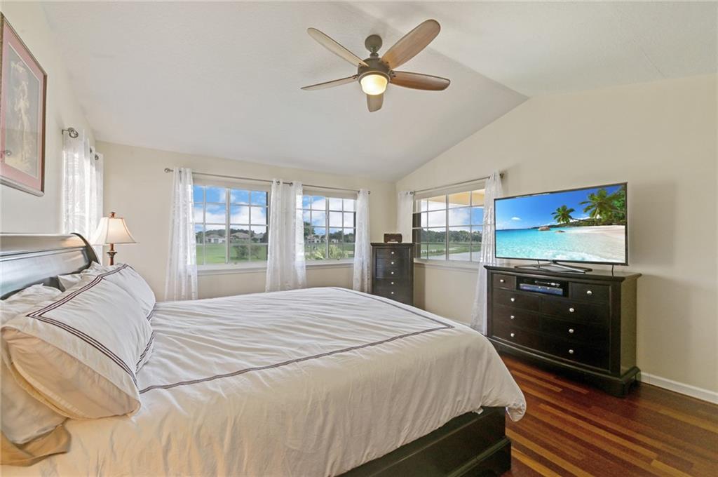 Custom Home with Million Dollar Views! The large completely fenced point water lot provides wonderful panoramic views of rolling greens of Eagle Trace golf course. Lushly Landscaped, Freeform Pool and Spa. Covered Sitting Area & Spacious New Tiled Patio. Enjoy watching the birds & golfers, who are way across the waterway. Porcelain Tiles on 1st FL & Brazilian Cherry Wood throughout 2nd FL. Formal Dining Area flows into Great Room/Family Room under High Ceilings. Large Working Kitchen w/snack bar. Spacious Master w/ oversized walk-in closet. Inviting Master Bath! Walk in closets in all Bedrooms. Loft, Laundry Rm, Solar Water Heater. 2 Car Garage w/new epoxy floor. Community Pool, Tennis Courts & Clubhouse are just across the street, just for The Hamptons & The Glen residents.
