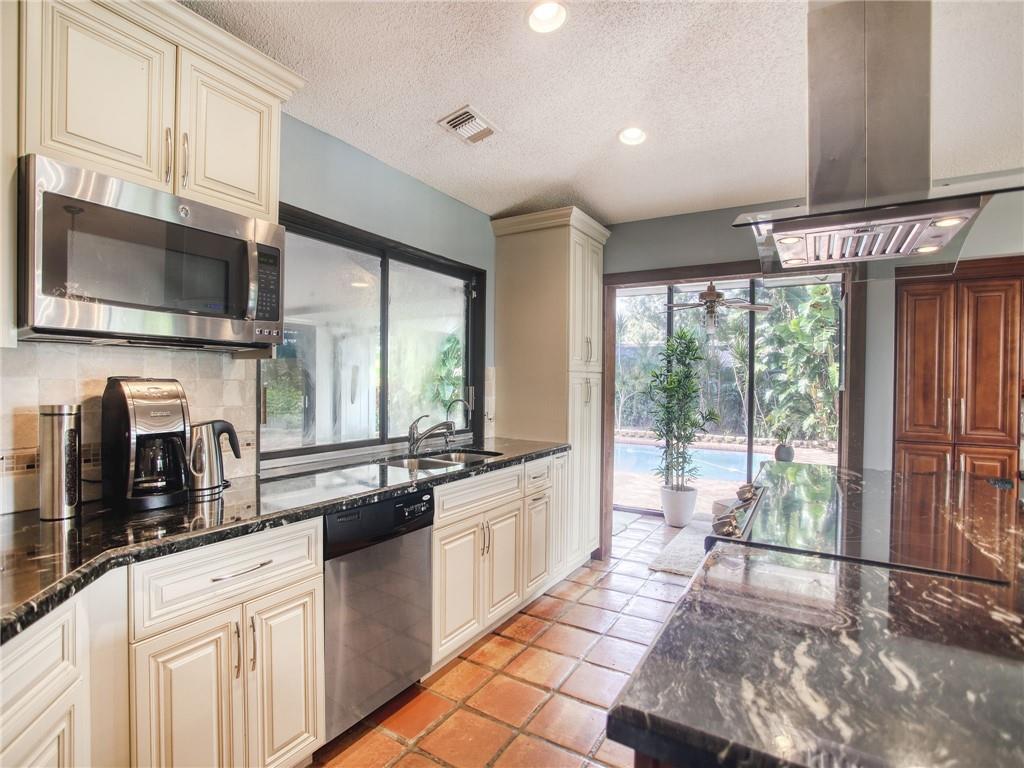 Elegant and Unique 3/2.5, 1 Story Home and 2 Car Garage. This home will make you Relax as you enter the Double Doors into the Sunken Living-Room and Beautiful Rustic Wood Ceiling Beams. It also features a Family-Room with a Real Fireplace. Gorgeous New Customized Kitchen with 42" Cabinets & Granite Counter Tops, also Top of Line SS Appliances & Customized Butller Pantry with Wine Cooler. Spacious Master Bedroom with Large Walk-in-Closet. Master Bath with Separate Shower and Tub with Jets. Both Guest Bedrooms are a Good Size. Guest Bathroom and Half Bathroom Beautifully Remodeled. Enjoy the Tropical Gardens & Pool from the Covered Patio. This Home is Great for Entertaining. 2013 New Roof, 2012 New A/C & New Solar Water Heater. NO HOA. Excellent Central Area, Excellent Schools!