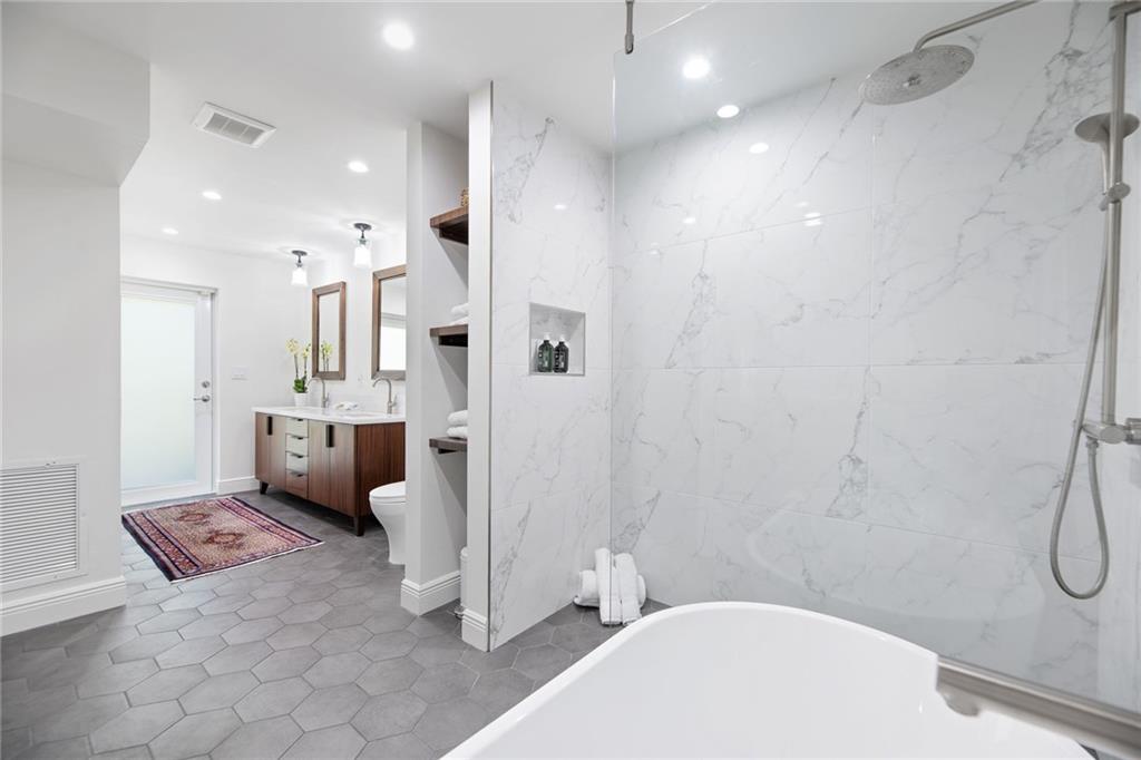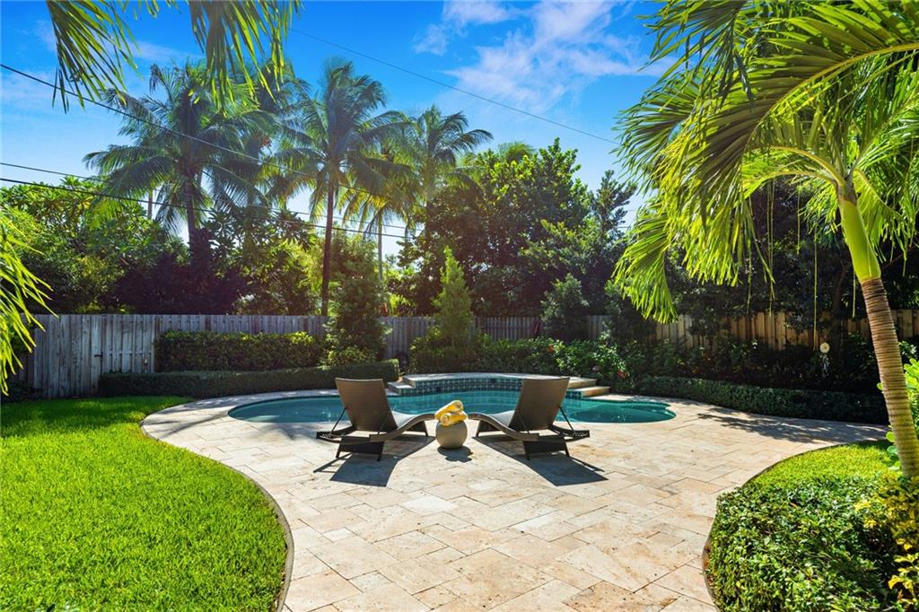 No expense spared in this down to the studs renovated Victoria Park pool home. Serene sightlines to pool area ready for grilling & entertaining. Total renovations of kitchen, baths, electrical, plumbing, PGT impact windows/doors, driveway, travertine patio, PebbleTec resurfaced pool with waterfall feature, new AC's and so much more. Chef's kitchen is carrara marble, porcelain backsplash, KitchenAid SS appliances, gas stove & loads of countertop space. Master bath remodel with custom mahogany double vanity, walk-in porcelain marble shower & freestanding soaking tub. Bonus storage room perfect for bikes and boxes galore. 3 bedrooms with library & floor plan allows for optional 4th bed or in-law suite. Complete exterior renovation with new fence & manicured landscape wrap this restful oasis.