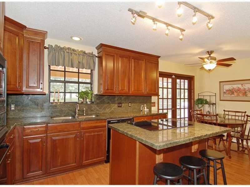 Unique center hall colonial on a tropical private lot; walk to Taravella High School. Huge rooms with formal living & dining rooms and amazing family room with brick fireplace, French doors & wood beamed ceilings. Bedroom + full bathroom downstairs & 4 o ther bedrooms upstairs. Newer roof. Kitchen features wood cabinets, granite counters, cooktop island & nice sized pantry. Tropical large screened pool/patio & spa. Cozy northern feel!