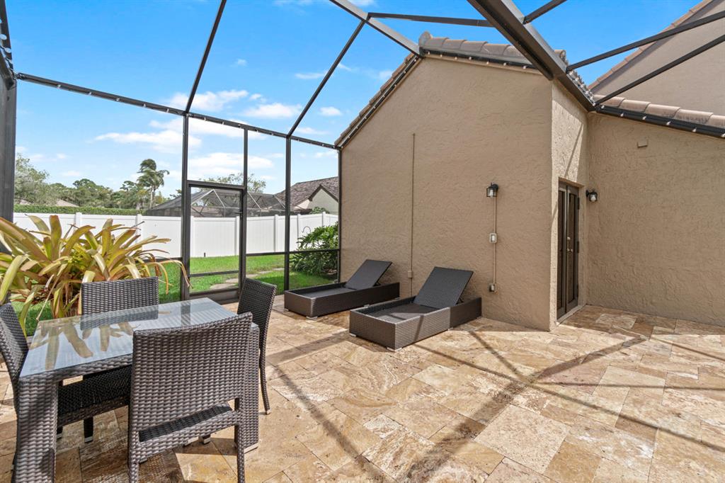 Immaculate Boca Raton home located in the low HOA community of Estates at Boca Lyons! No expense was spared renovating this trophy property from top to bottom, inside and out. The roof was redone in 2013, the exterior is freshly painted, and the backyard boasts a new travertine deck with a fully screened-in pool and patio -- all enclosed by a new 6ft privacy fence! On the inside, the breathtaking entrance features soaring high ceilings and the entertainer's dream floor-plan! This charming turnkey home features 32x32 porcelain tile through the main living areas, and wood-look porcelain tile in the bedrooms. The functional layout features 3 bedrooms and 2.5 bathrooms sprawling nearly 1,900 living square feet, including a distinguished indoor laundry room.