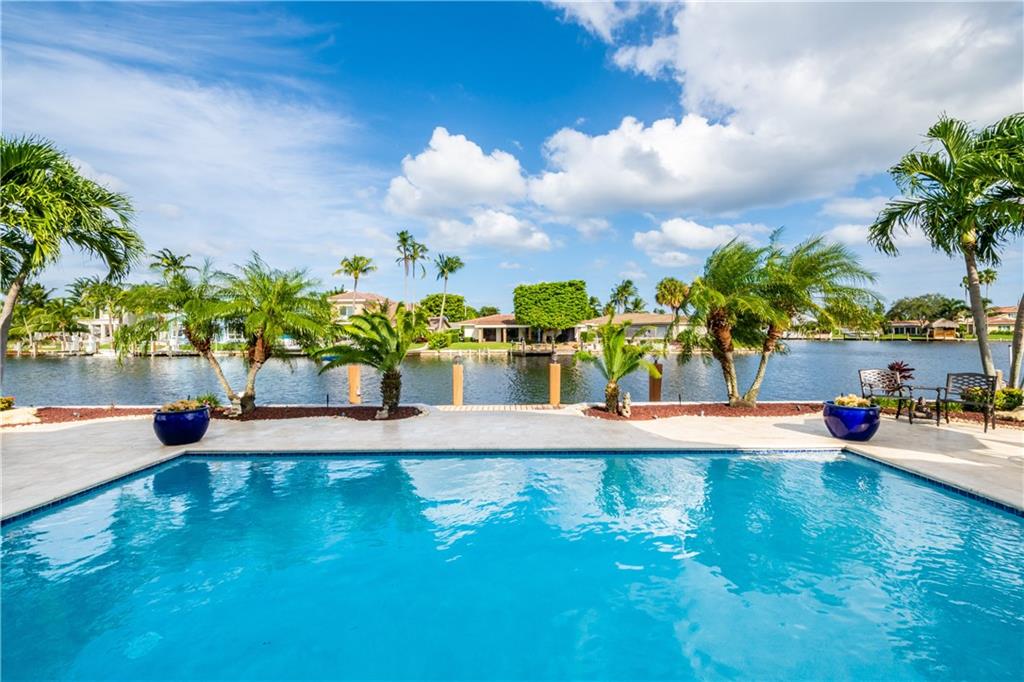 Beautiful Waterfront home in Cypress Lake with Amazing water views, new roof, impact windows, doors & garage door, New diamond bright pool, Travertine marble patio, 2009 Seawall raised w/ batter piles, Exterior lighting, 2018 Hot water heater. This spacious 3 bedroom 2 bath pool home is a tropical paradise, Marble floors, Large master with adjoining room suite suitable for office, sitting room and gym, Upstairs club room includes a wet bar & balcony, just 30 minutes to the inlet and only one 14' Fixed bridge makes this a home in paradise.