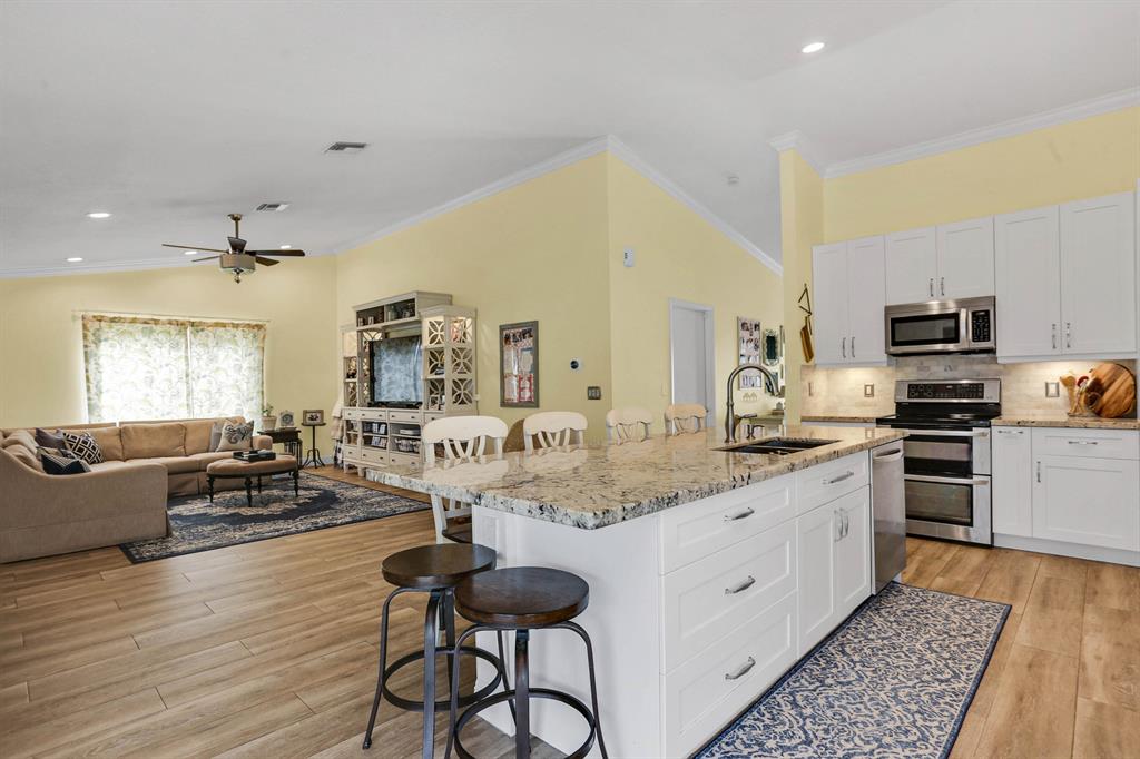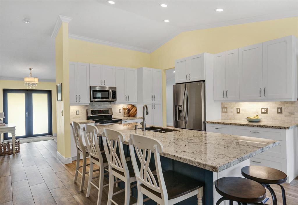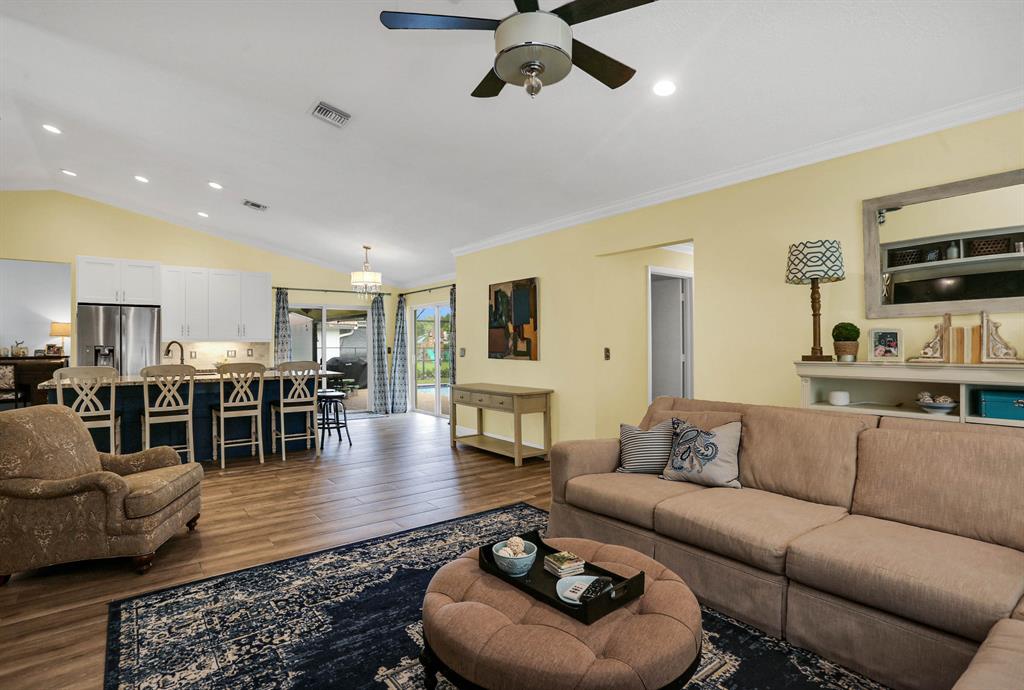 PERFECTLY UPDATED 4BR/2BA/2CG HOME IN SOUGHT AFTER PINE RIDGE COMMUNITY. FROM THE MOMENT YOU STEP IN YOU EXPERIENCE THE WIDE OPEN LIVING AREA. $80,000 IN RECENT UPGRADES. IMPACT WINDOWS AND DOORS THROUGHOUT THE HOME. NEW WHITE SHAKER KITCHEN CABINETS, EAT-IN KITCHEN WITH BEAUTIFUL GRANITE COUNTERTOPS FEATURING AN OVERSIZED ISLAND. ALL STAINLESS APPLIANCES. A COOKS DREAM. PORCELAIN PLANK FLOORING IN LIVING AREAS, LAMINATE IN BEDROOMS, NO CARPET IN THIS HOME. CROWN MOULDING AND FRESHLY PAINTED INTERIOR & EXTERIOR. SPLIT BEDROOM LAYOUT. NEW FRONT MODERN WOOD DOOR AND HURRICANE RATED 2 CAR GARAGE DOOR. SCREENED POOL ENCLOSURE WITH SUPER GUTTERS, NEW POOL PUMP 9/20. OVERSIZED YARD FENCED. OVERLOOKS CANAL. ROOF 2005. ABSOLUTELY MOVE IN READY. WILL NOT LAST LONG!