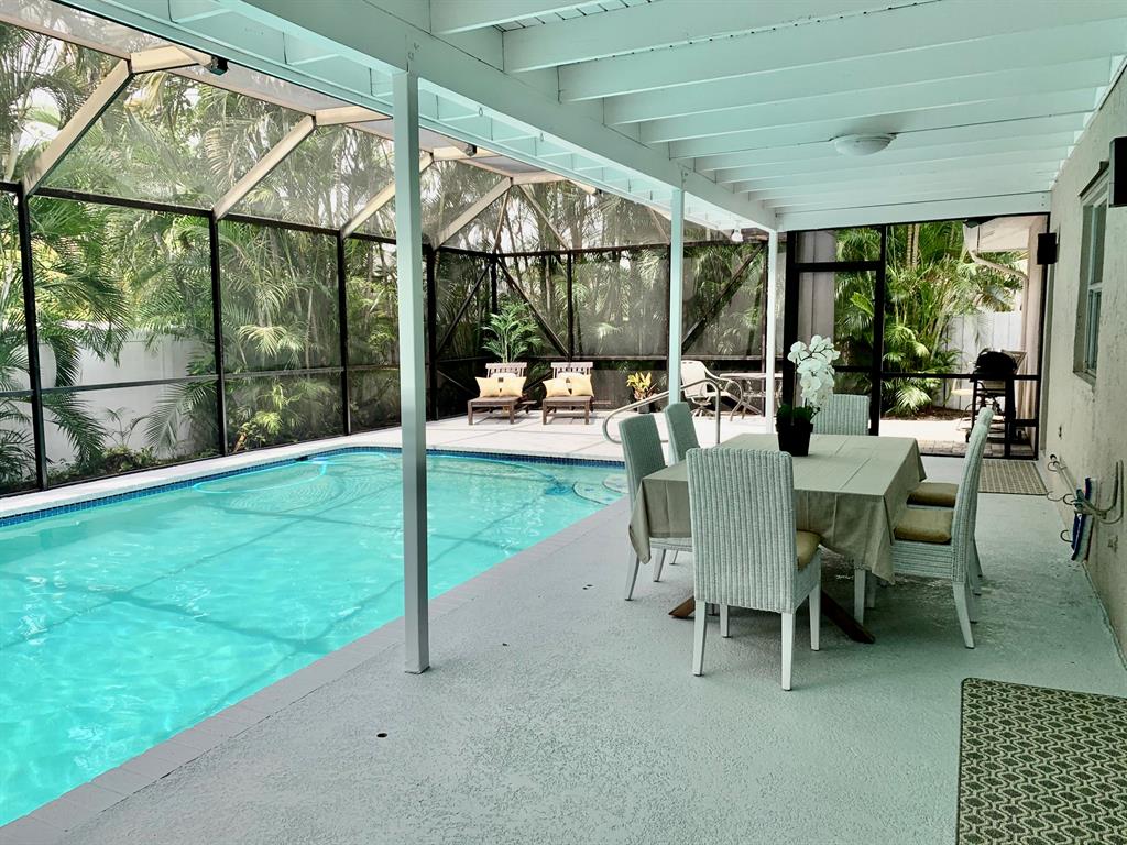 Stunning home newly updated inside and out featuring a custom kitchen with oversized island. Desirable open split floor plan, with soaring ceilings, inviting natural light and indoor laundry. Double sliding doors open to an amazing outdoor living space with covered dining, screened pool, cabana bath and grill area. This beautiful lot provides a private fenced yard, mature trees, new landscape and a multi-zone sprinkler system. Garage features extra storage with wood cabinetry and side door access to a garden with composter. This outstanding community has low HOA and excellent location near shopping, restaurants, entertainment and only a short drive to the beach.