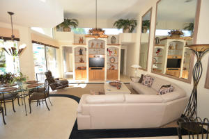 Fabulous courtyard home in the beautiful subdivision of Fairway Lake in Broken Sound Country Club. This amazing home has that vacation feel from the moment you open the front door. Some of this homes features include, a wide open floor plan, expanded living room, new porcelain floors, 2 newer A/Cs, new pool heater, new refrigerator, two walk in closets in the master bedroom built out, modern kitchen, great bar area, a newer roof & hurricane shutters. Enjoy this beautifully landscaped home with its 1 bedroom, plus convertible den guest house. This updated home has it all, do not miss out it will not last long! Excluded are dining fixture, breakfast fixture and pool vacume.