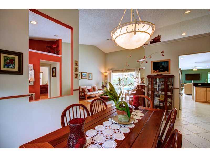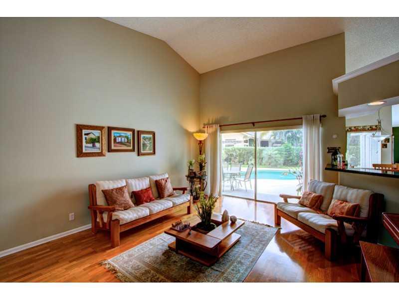 This phenomenal 4 bedroom, 3 bath pool home is located in an upscale community in north Coral Springs. This unique triple split bedroom floor plan provides privacy and open living spaces. Updated kitchen with 42' wood cabinets, newer stainless steels app liances, granite counter tops, ceramics and hardwood floors throughout. Large bedrooms and additional features as vaulted ceilings, walking closets, accordion hurricane shutters, fenced backyard, A/C is 3 years old. Very motivated owners.