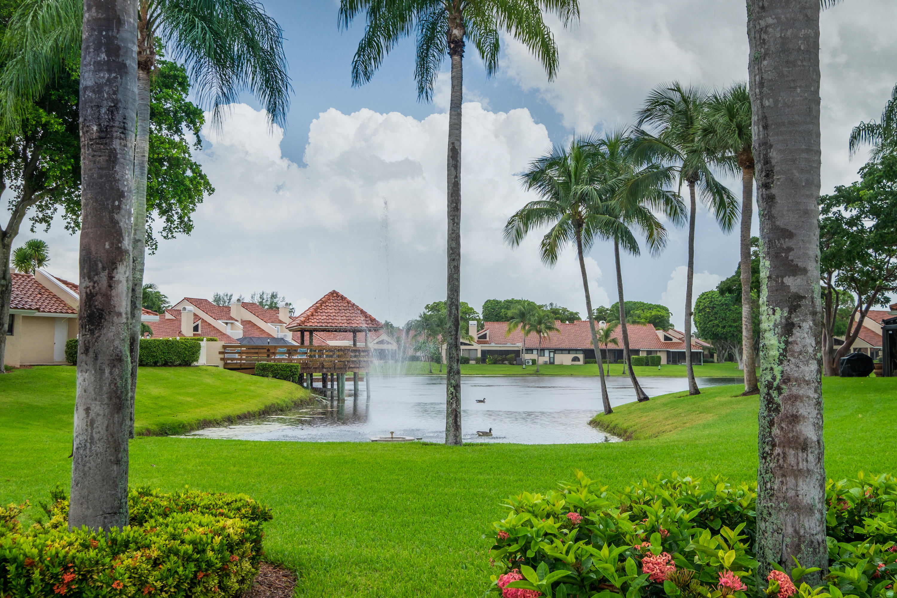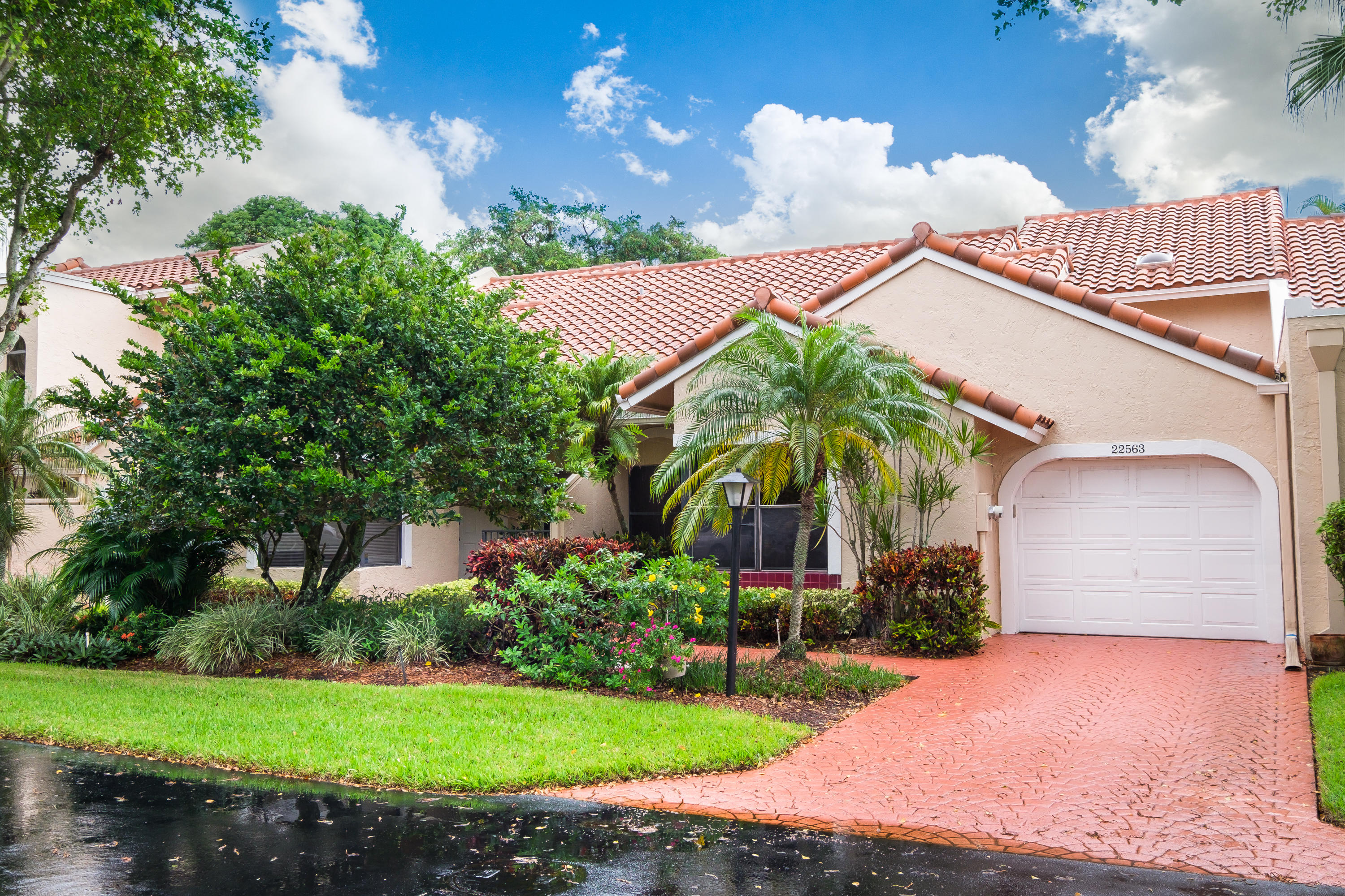 Lovely Townhouse, 3 bedrooms, 3 full baths with a 1 car attached garage. There are 2 master suites. One is located on the 1ST FLOOR and the other on the 2ND FLOOR. 3rd bedroom is currently open and being used as an office/den. Updated and expanded eat - in Designer kitchen with exotic Granite Counters, Custom wood cabinets and Engineered wood laminate floors. Open living room - Dinning room area with views of the golf course. Nice size screened patio enclosure with quite and serene views of the lake and Golf course. Membership to the Boca Pointe Country Club is optional with many affordable plans to choose from. HOA fee includes, exterior insurance, roof (replaced in 2007), cable, Alarm, clubroom, heated pool, Jacuzzi and 24 manned security gate. All ages, Pets allowed with restrictions.