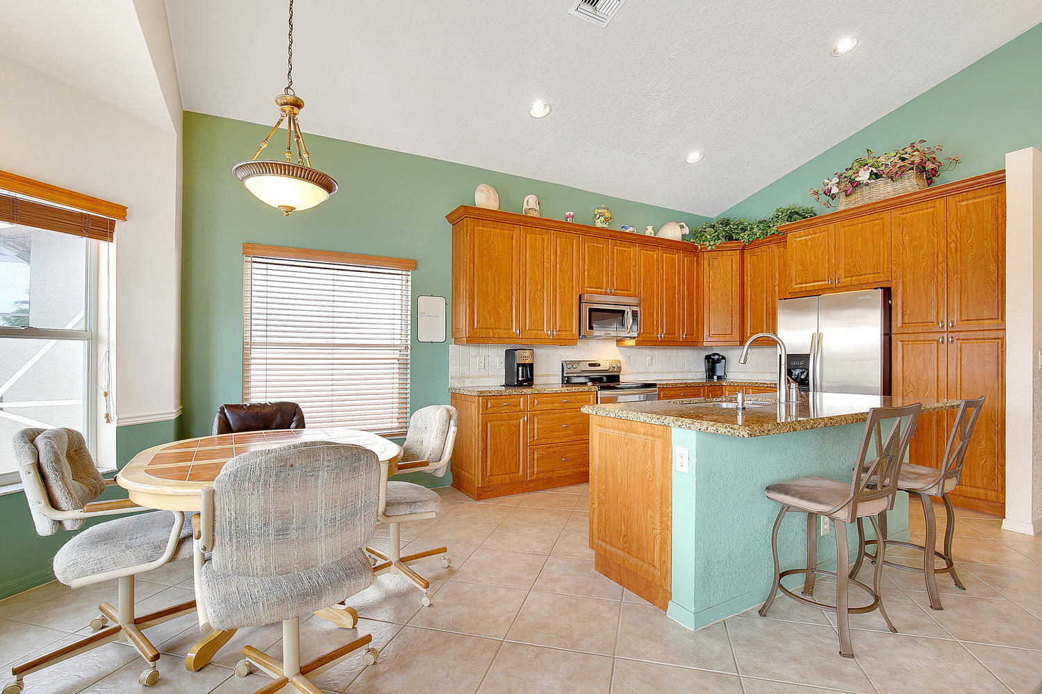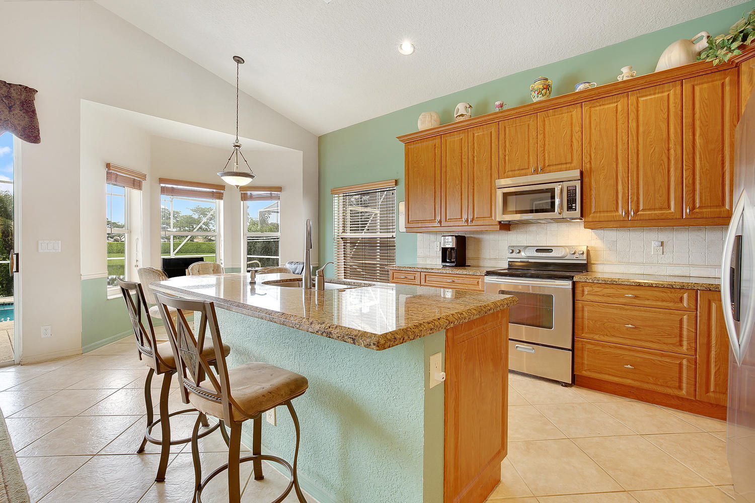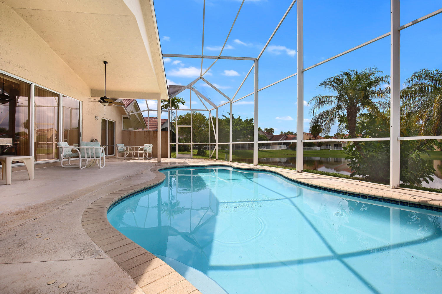 WOW - Just what you've been waiting for! Updated Boca Winds 4 Bedroom Pool home w/sparkling lake views! Stone look tile on the diagonal. Remodeled kitchen has ''wood'' cabinets w/crown, granite counters, tumbled marble backsplash & cabinet style pantry. Master suite has vaulted ceiling, remodeled bathroom w/wood cabinets, beautifully tiled shower with bench seat + customized walk-in closet. 2nd bathroom also remodeled with wood vanity & granite counter. Expanded Kool Deck patio surrounds the screen enclosed free form pool that was just refinished with diamond brite. New pool pump and filter in May. LG Washer & Dryer. ''A'' rated schools, parks & shopping just minutes away. LOW HOA fee includes basic cable, community pool & playground, Clubhouse/Community Room for parties & roving security.