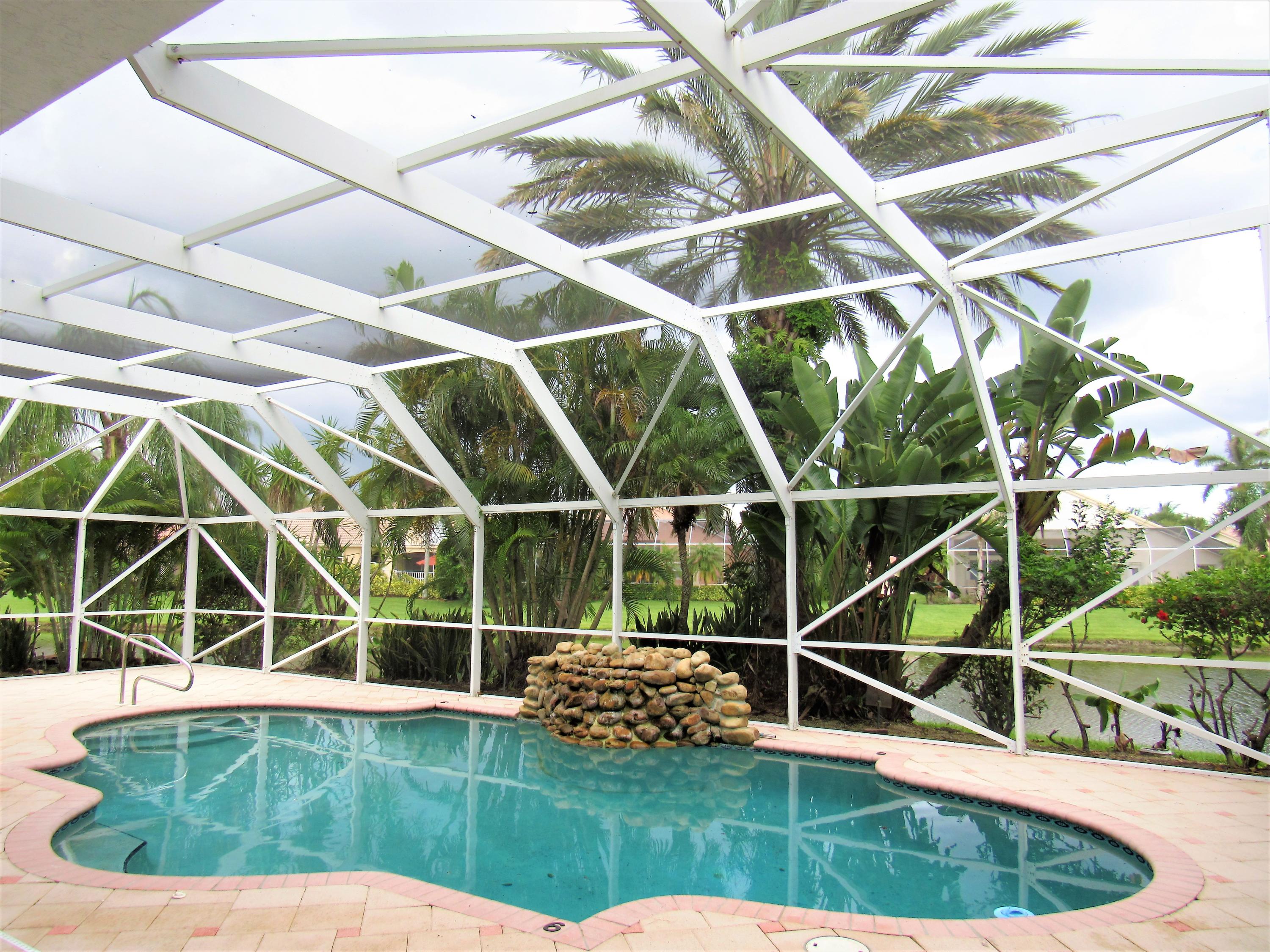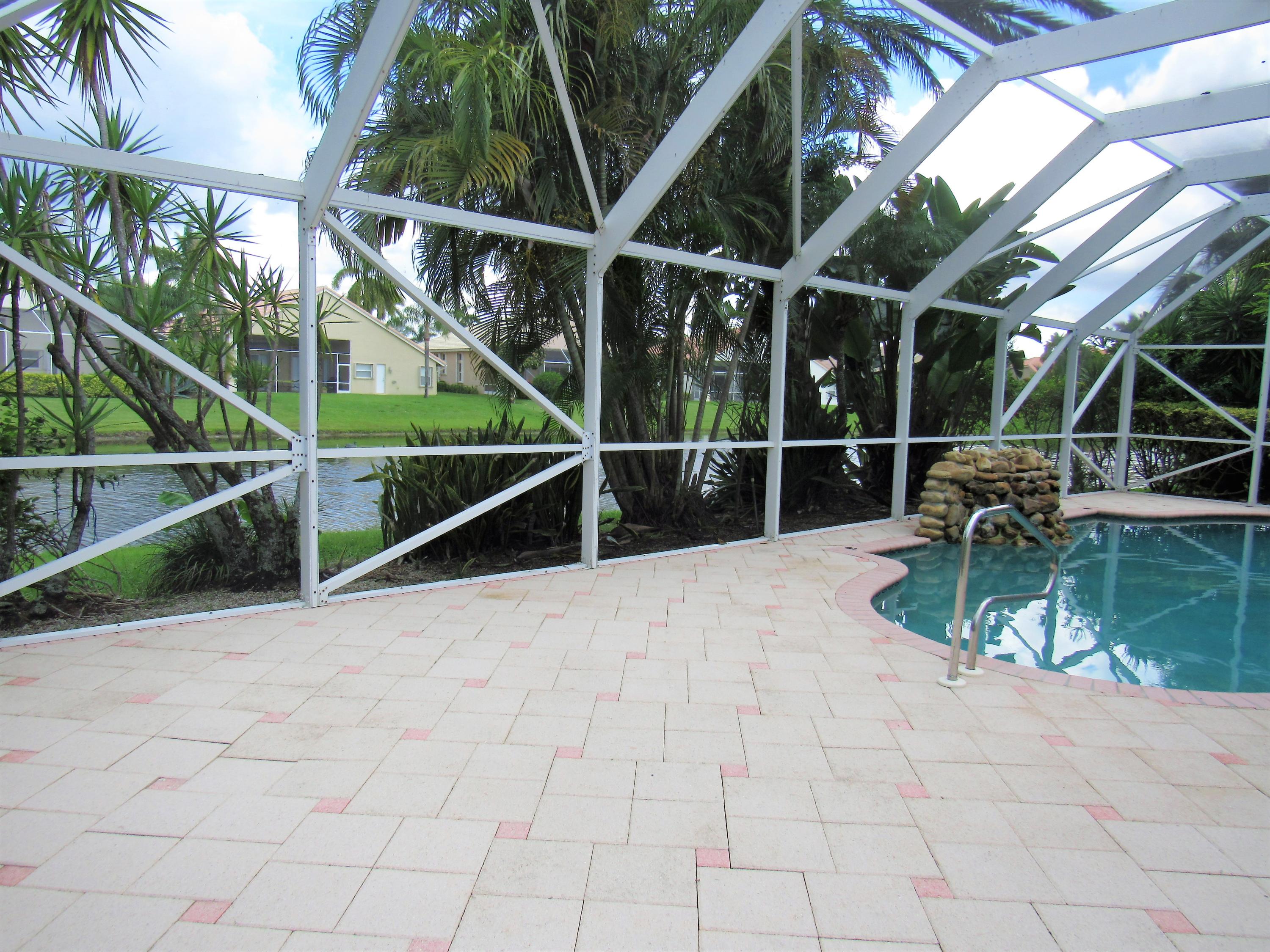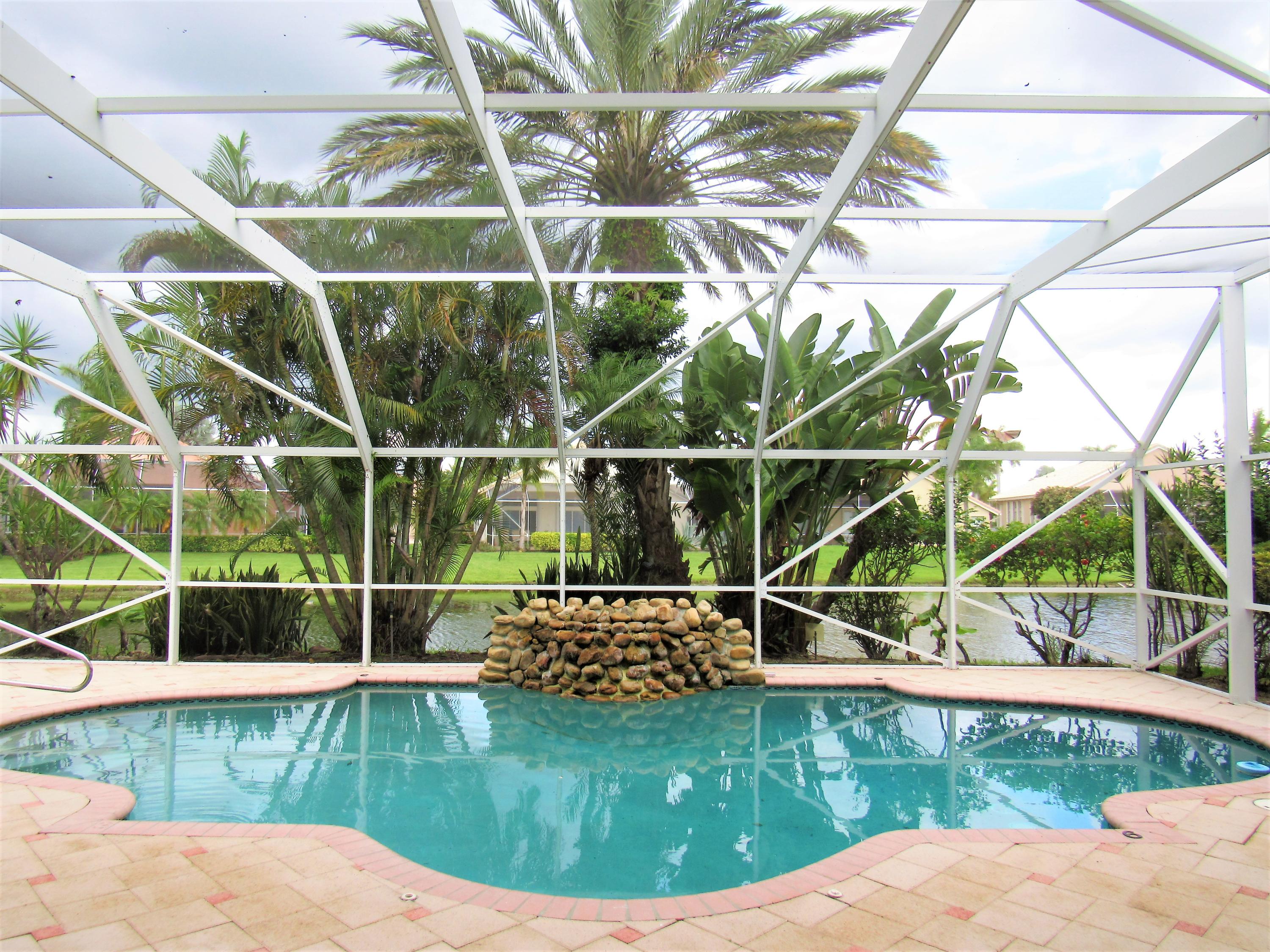 Amazing * Lake * Waterfall Pool * Cul-de-sac & Screen Patio! New Kitchen Cabinets, New Granite Counters with extended Bar & New Stainless Appliances! High Volume Ceilings, Large Open Floor plan, High Hats, Tile & New Laminate wood floors. Family, Master, Dining, Kitchen, 2nd bedroom have Pool/Lake views! Large Master Suite overlooks Waterfall Pool & Lake, 2 Master Closets, New Master Shower, New Granite counter, Dual sink vanity & Corner Bathtub! Split bedroom floor plan & New Laminate Wood floors in All 4 bedrooms! New Interior Paint! Remodeled Cabana bath, New Shower, New tub & granite vanity! Whirlpool W/D & basin. Accordion Shutters! Large .23 acre pie shaped lot with Fruit Trees! Resort Style Clubhouse, Pool, Gym, Spa, Tot lot, Tennis & Billiard. Low HOA includes Internet & TV package
