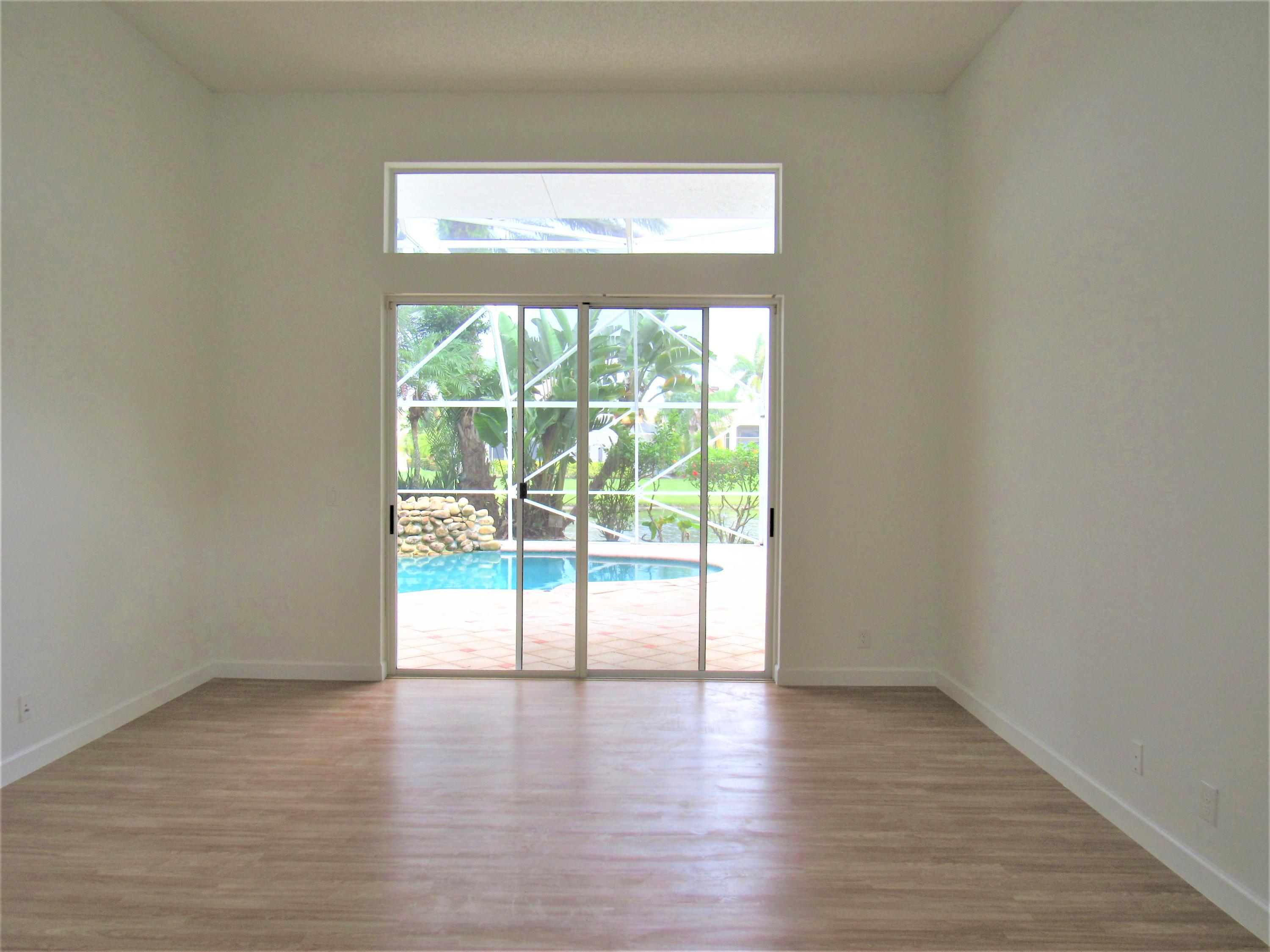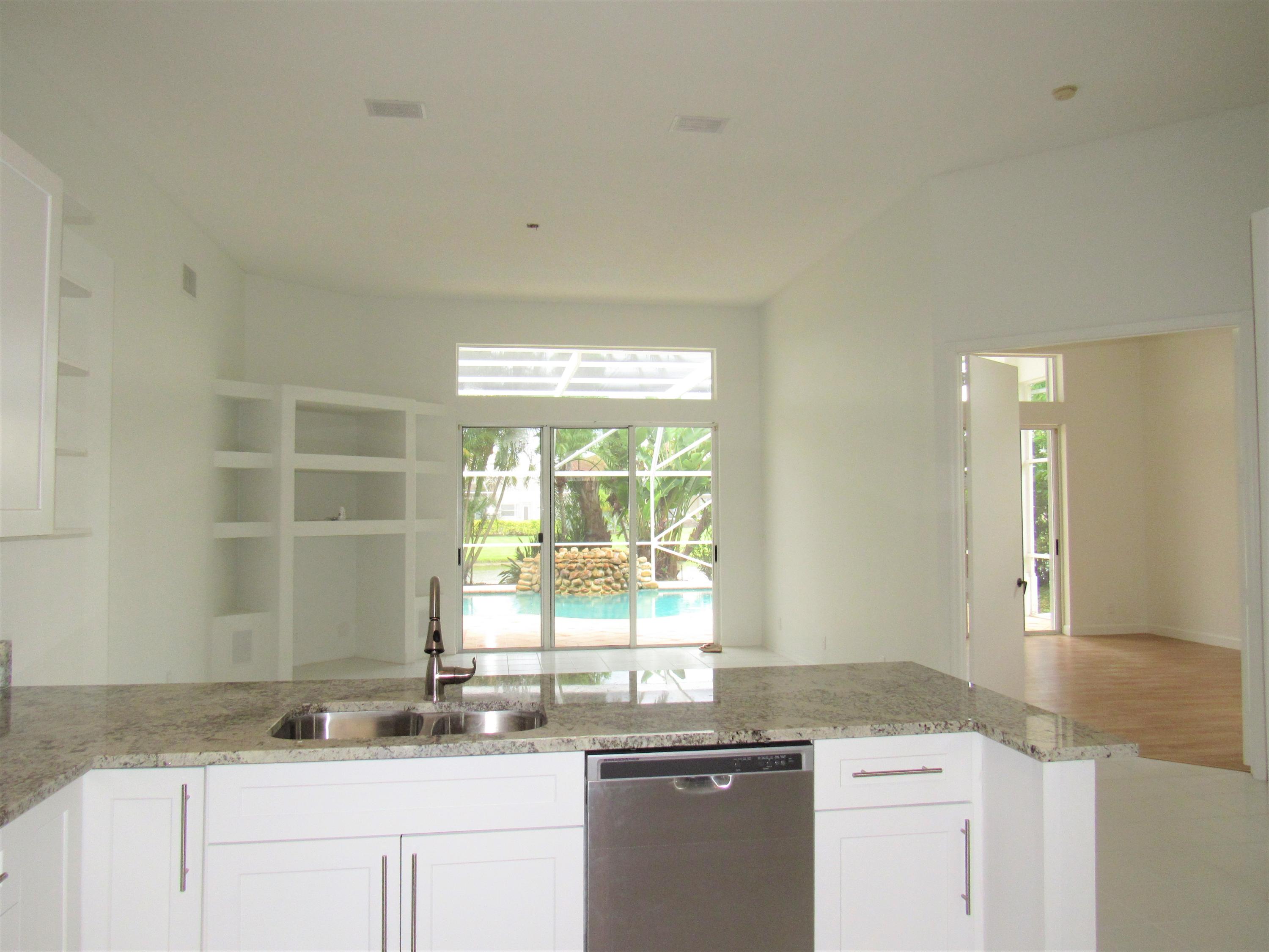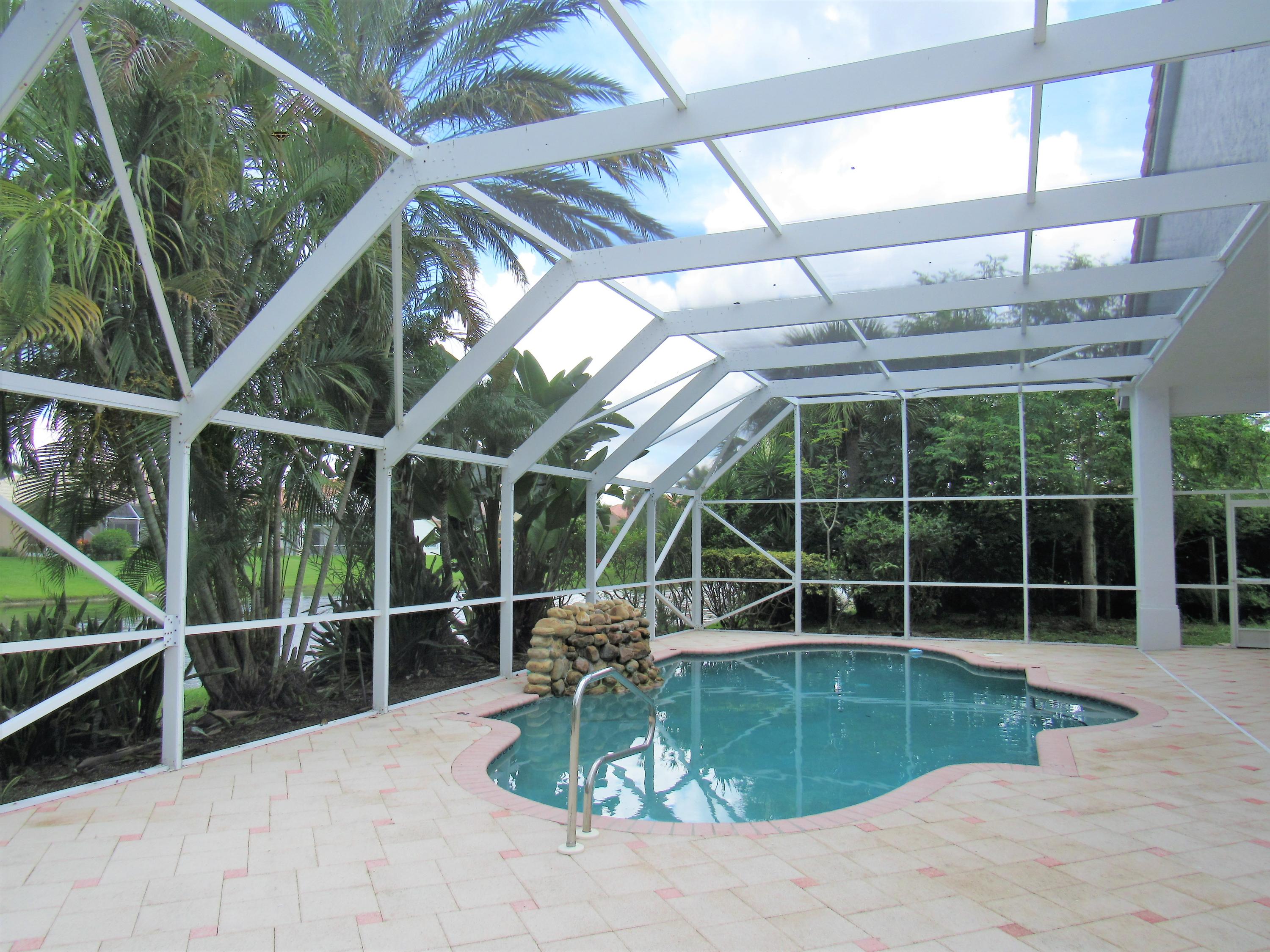 Amazing * Lake * Waterfall Pool * Cul-de-sac & Screen Patio! New Kitchen Cabinets, New Granite Counters with extended Bar & New Stainless Appliances! High Volume Ceilings, Large Open Floor plan, High Hats, Tile & New Laminate wood floors. Family, Master, Dining, Kitchen, 2nd bedroom have Pool/Lake views! Large Master Suite overlooks Waterfall Pool & Lake, 2 Master Closets, New Master Shower, New Granite counter, Dual sink vanity & Corner Bathtub! Split bedroom floor plan & New Laminate Wood floors in All 4 bedrooms! New Interior Paint! Remodeled Cabana bath, New Shower, New tub & granite vanity! Whirlpool W/D & basin. Accordion Shutters! Large .23 acre pie shaped lot with Fruit Trees! Resort Style Clubhouse, Pool, Gym, Spa, Tot lot, Tennis & Billiard. Low HOA includes Internet & TV package