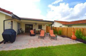 Wow! This 3/2 house is simply amazing! Newer Barrel tile roof, new a/c, amazing kitchen,new cabinets(including pull out draws for spices,ect, newer stainless appliances, bluestorm counter tops,pendant lights,many high hats,kitchen wall opened for maximum brightness and airy feel,cathedral ceilings, tiled flooring in all living areas and laminate wood flooring in the bedrooms,freshly painted,pavered driveway and pavered covered patio,new private fence, new tropical landscaping, huge beautiful backyard with a pristine lawn. This property is in great condition. Tons of natural light and open space that makes the home feel upbeat and happy!.......no HOA fees-pet friendly-all ages-can be rented right after purchase.