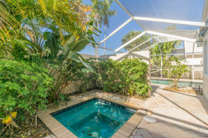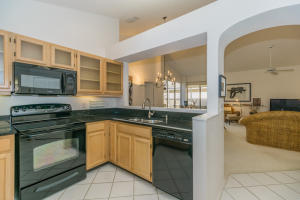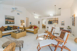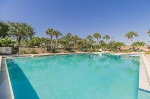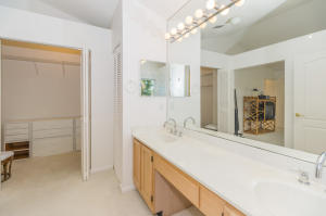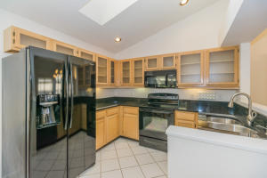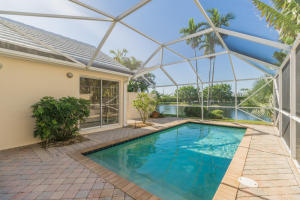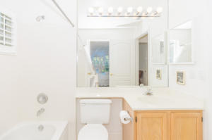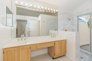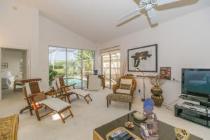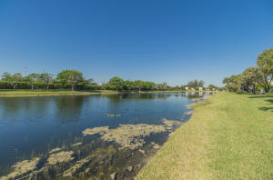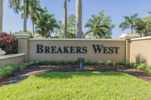 Gorgeous panoramic lake views from this wide-open, bright & spacious home located on a quiet street in the highly sought-after Breakers West community in West Palm Beach. This airy and comfortable home has many desirable features, such as soaring vaulted ceilings, oversized windows and sliding glass doors with plantation shutters, like-new carpeting and tiled flooring laid on the diagonal, recessed lighting, skylights, gourmet kitchen with like-new glass-paned cabinets, granite countertops, a gorgeous master suite with like-new carpeting, patio access, and a recently upgraded cabana shower. The large screened-in patio has a sparkling blue pool and separate spa and plenty of space for grilling and dining. It is surrounded by lush tropical landscaping which provides plenty of privacy