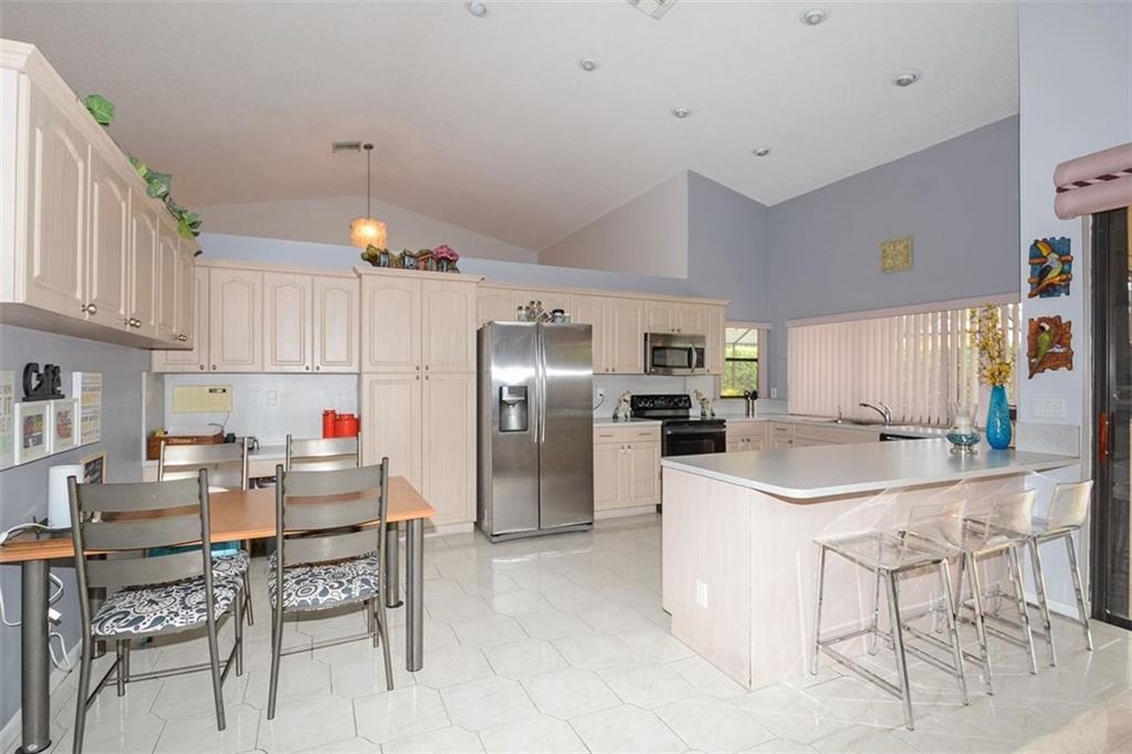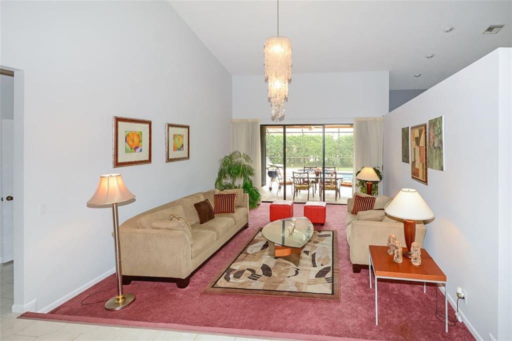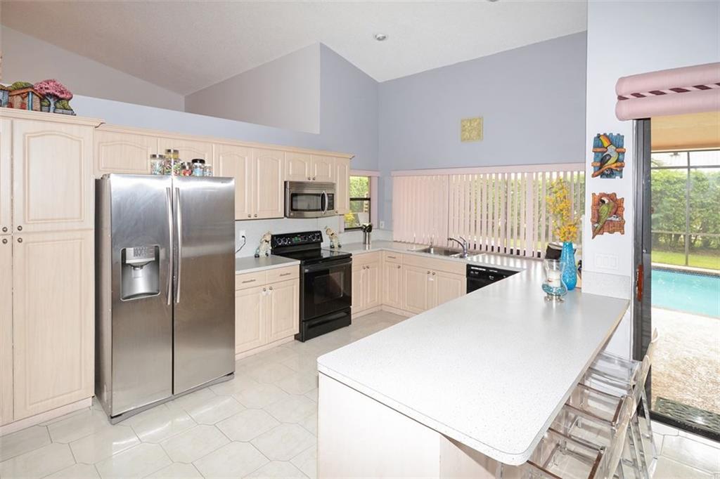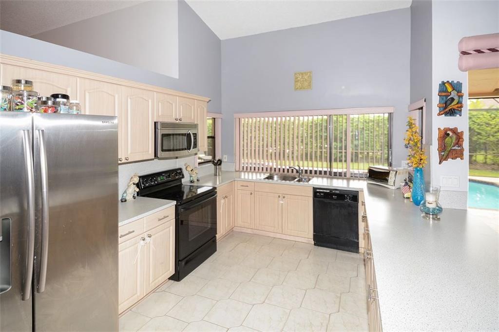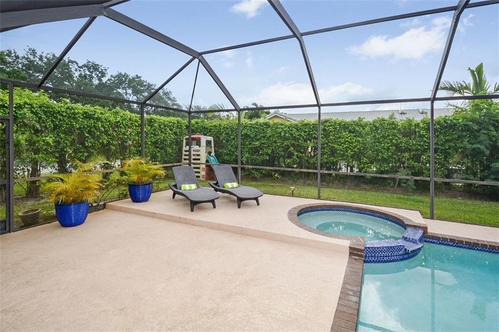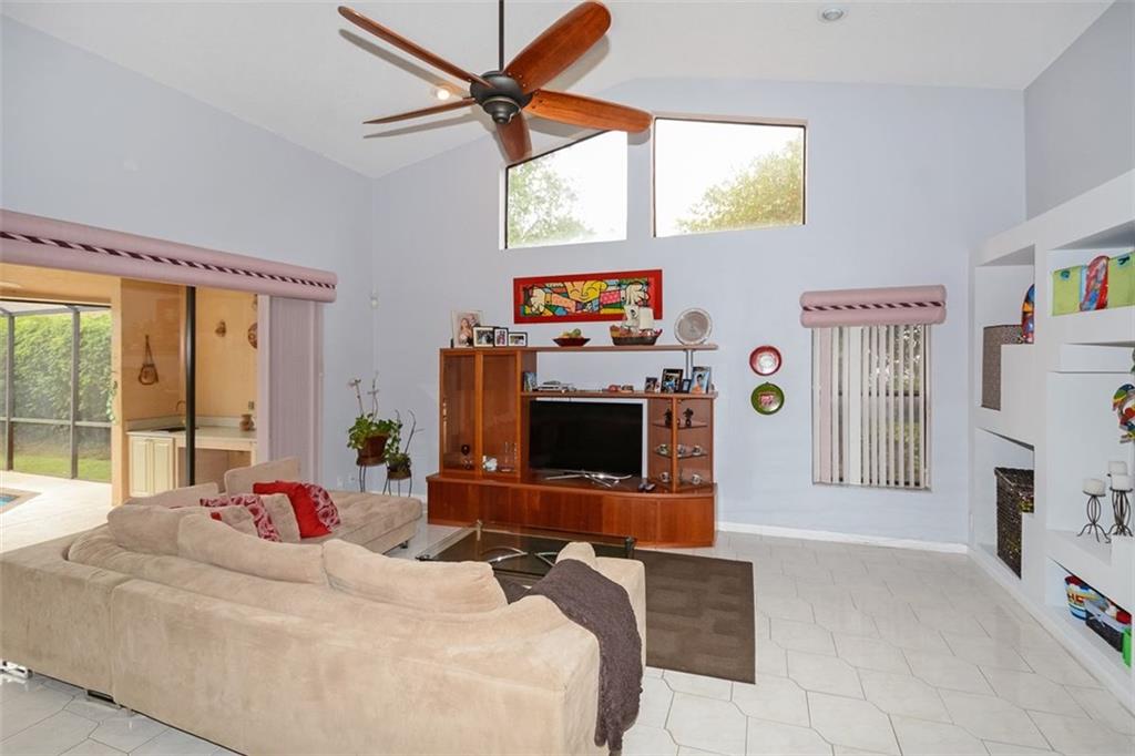 This spacious four bedroom pool home sits on a corner lot with a gorgeous circular driveway. Perfect for a large family or the buyer that likes to entertain. Nice split floor plan with a very large master bedroom. It comes with a kitchen and family room combination with high vaulted ceilings making for a open and comfortable living space. Push open the siding doors all the way to bring the outdoor living in with a screened in pool area that has plenty of room for patio furniture and sunbathing