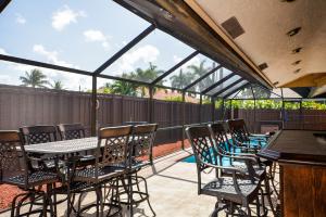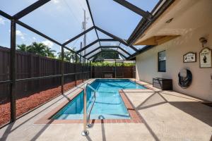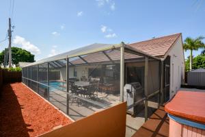 This is the best value you in East Boca! This 4 bedroom home has many features to please most any buyer which include; vaulted ceilings with skylights (which make this house very light and bright), a 48'' cubic sub zero fridge, open kitchen with bar area that opens up to the large living room, this house is mostly all tile through out, a super large laundry room inside, the master bedroom even has his/hers closets. The back yard is awesome, it is screened in & partially covered & perfectly situated with south exposure. There is a custom bar that is already wired for a TV & fridge, a heated pool and Jacuzzi. The property is private & fully fenced in and has 3 storage sheds that stay. This house has been well maintained & also has nice landscaping & an expanded 3 car wide driveway..