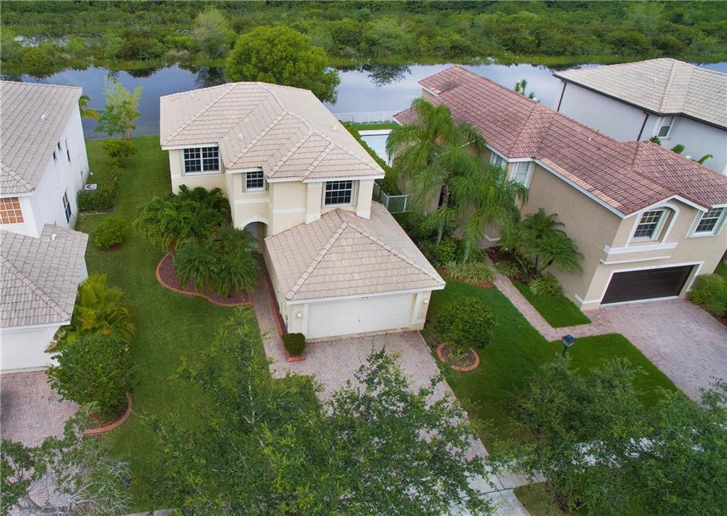BEAUTIFUL TWO STORY HOME IN GUARD GATED COMMUNITY. THE PEACEFUL WATERFRONT SETTING WITH NO NEIGHBORS BEHIND. TILE FLOORING & CROWN MOLDING DOWNSTAIRS. ONE BEDROOM W/ WALK IN CLOSET AND FULL BATH ON FIRST FLOOR. LARGE MASTER WITH TRAY CEILING, LAKE VIEW, HIS & HERS WALK IN CLOSETS. INTERIOR WAS RECENTLY PAINTED WITH NEUTRAL COLORS. AC, FRIDGE, DISHWASHER, AND DRYER ARE 2 YEARS NEW. PAVED PATIO WITH PLENTY OF ROOM FOR A POOL. SECOND FLOOR IS PROTECTED BY ACCORDION SHUTTERS.