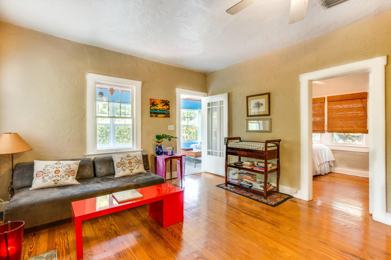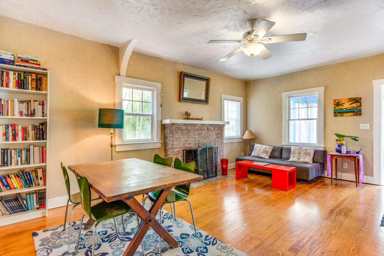 9k price reduction & seller ready for quick closing. Bring all offers now. Very charming frame stucco 2 bedroom, 1 bath home in the hot Central Park Historic area on a lot & a half! Located on the south side of a one way street behind beautiful iron gates with a paver driveway leading in to the property that has 3 Gumbo Limbo trees This Key West style cottage has Dade county pine floors & brick wood burning fireplace. The kitchen has the original sink & counter & gas stove for cooking. Jack & Jill bathroom with cast iron bathtub with claw feet. Newer windows, tankless gas hot water heater, drop down stairs to attic storage, &upgraded electical panel. Very private tropical yard that may have room for a pool. Detached garage with washer & dryer Best news is the house will pass the 4 pt
