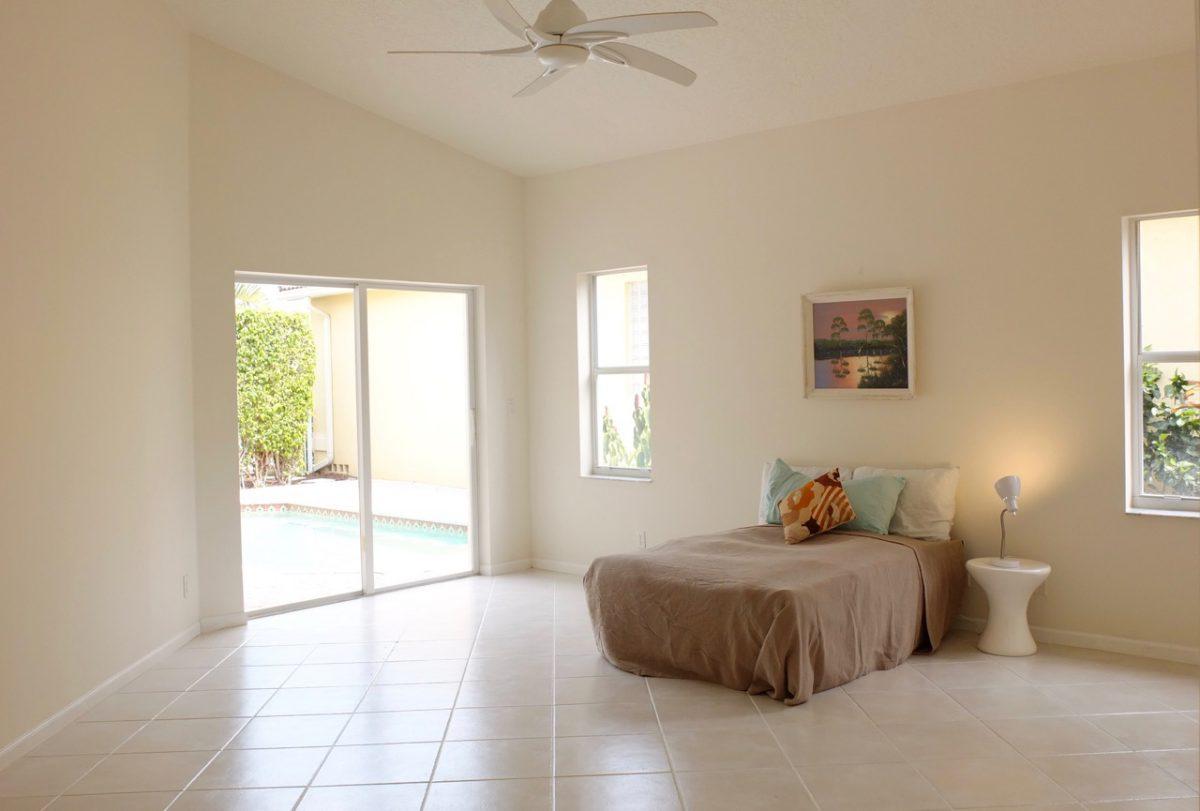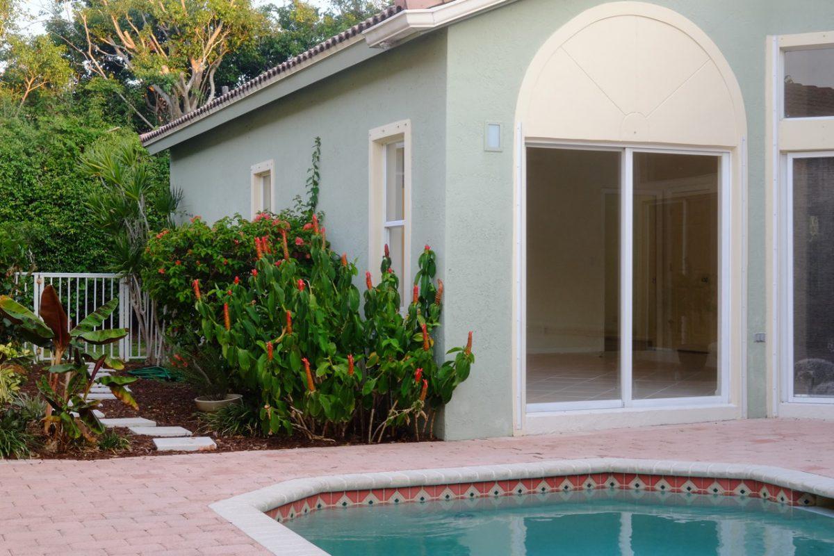This bright, spacious pool home sits next to a nature preserve on a quiet cut-du-sac in desirable East Boca. It features an open floor plan, vaulted cathedral ceilings and expansive windows with views of the pool courtyard, private back yard with 30-foot mango tree, and nature preserve. The master suite includes a walk-in closet, whirlpool tub, walk-in shower, and his and hers double sinks. The home includes a 2-car garage, wired security and intercom systems, and tropical landscaping that attracts butterflies and hummingbirds. Located in Boca Preserve, a small gated community just minutes from the beach, restaurants, and shopping. The low HOA fee includes yard maintenance.