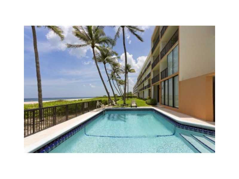 Two story townhouse on top 2 floors of a 4 story, 20 unit complex. Located directly on the beach. Magnificent ocean views, Balconies on each floor. Views of Pompano Pier to the south and Hillsboro Inlet to the north. Recently upgraded. Kitchen has g ranite countertops and stainless steel appliances. Two bedrooms with walk in closets, 2 1/2 baths, office/den, dining room and family room with custom built in wall units.