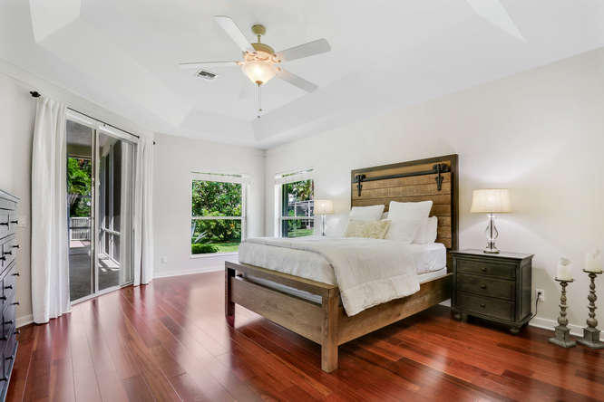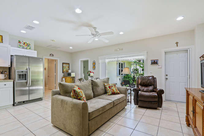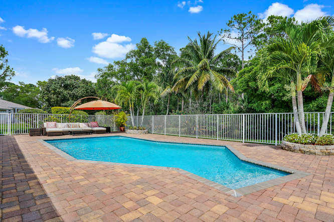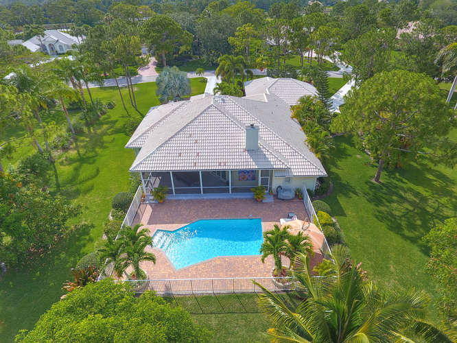 W 4BR/3.5 bath house PLUS 981 sq. ft. 1BR/1bth mother in law apt. with it's own kitchen and laundry room. Crown moldings in Living areas and glimmering 3/4'' cherry hardwood floors in all bedrooms in the main house. New screened enclosure built to the latest building codes. All Ac's replaced since 2009. Lush landscaped 1 acre lot with golf & lake views featuring mango, avocado, banana & citrus trees.