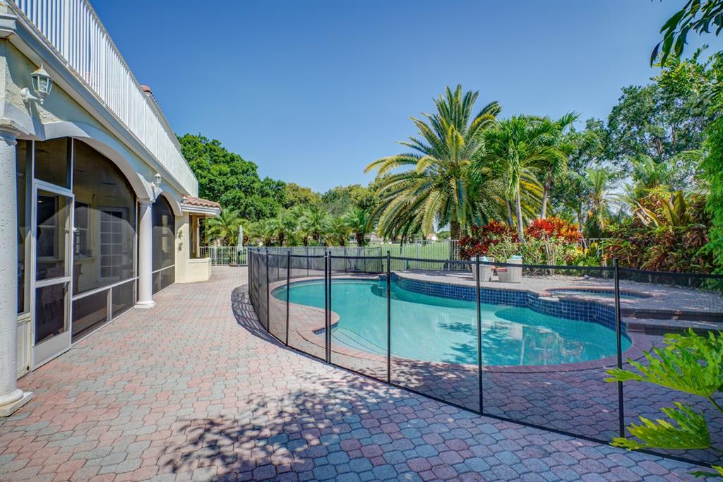 Don't Miss this rarely available IMMACULATE golf course home featuring 5 Bedrooms, 4 1/2 Bath 2 story on hole 5 of Eagle Trace with spectacular views,Nicely situated on a cul de sac, this home features marble and wood floors through-out main living area, newer roof (2006) Family room is equipped with a beautiful fire place and wet bar. Kitchen upgraded with Sub-Zero fridge and center island, and granite counter tops. This home has large hurricane impact French Doors and windows, High volume ceilings (25 Ft), Master Suite has a huge balcony overlooking the Golf Course. Master Bath features whirlpool tub, and separate shower. Beautiful resort style heated pool/SPA w/ baby gate and screened in patio. Fully fenced yard with plenty of room for entertaining and yard space for kids or pets.