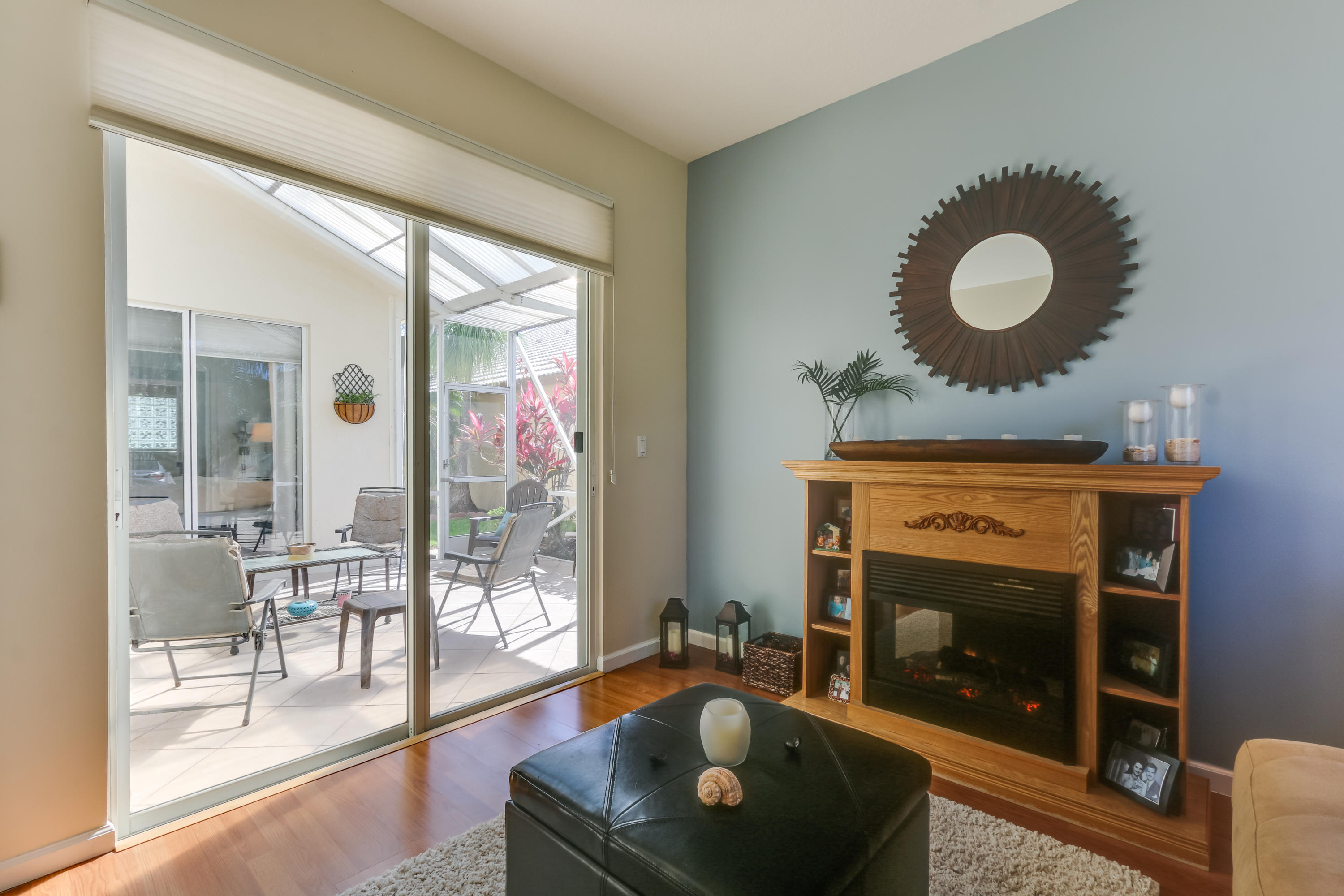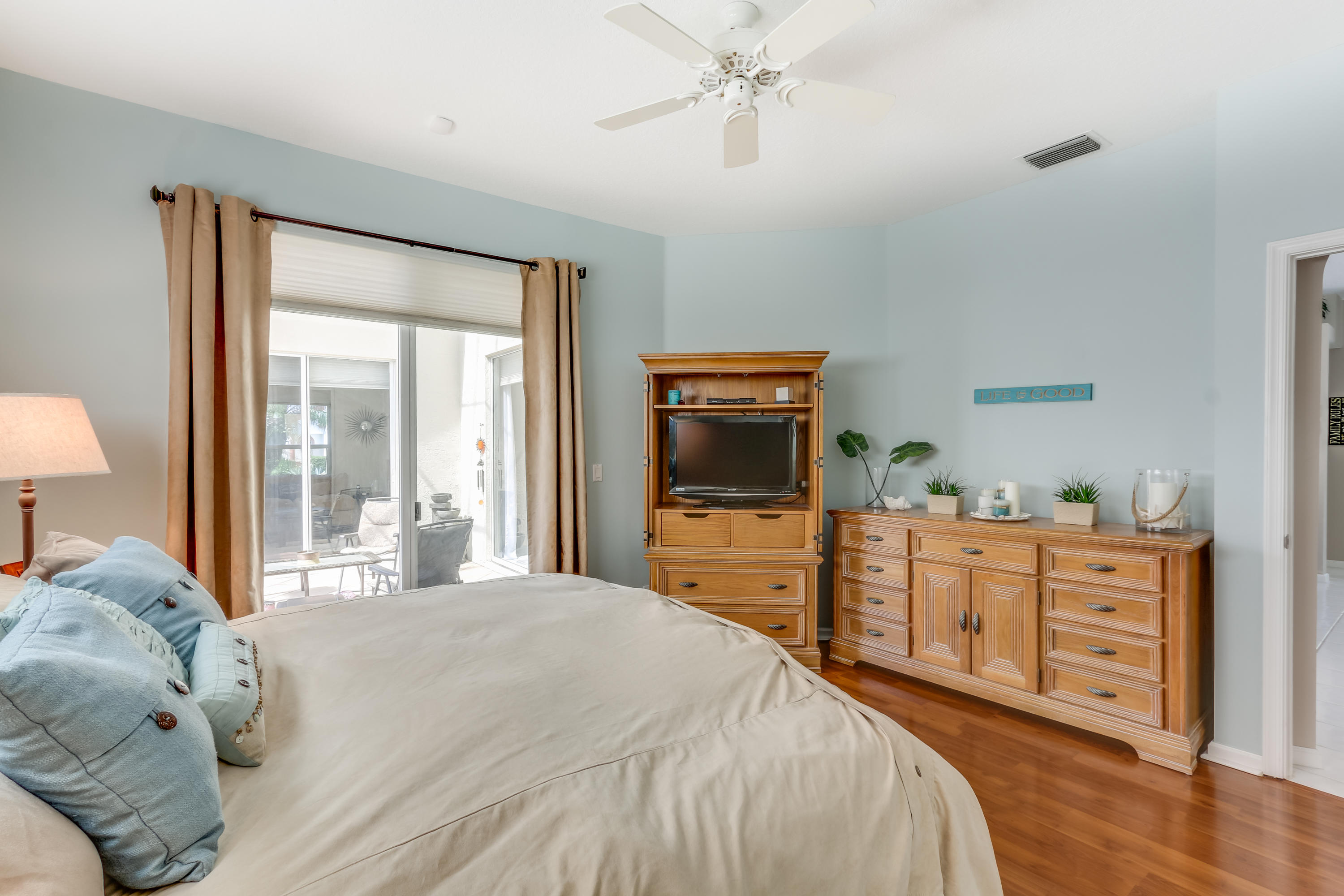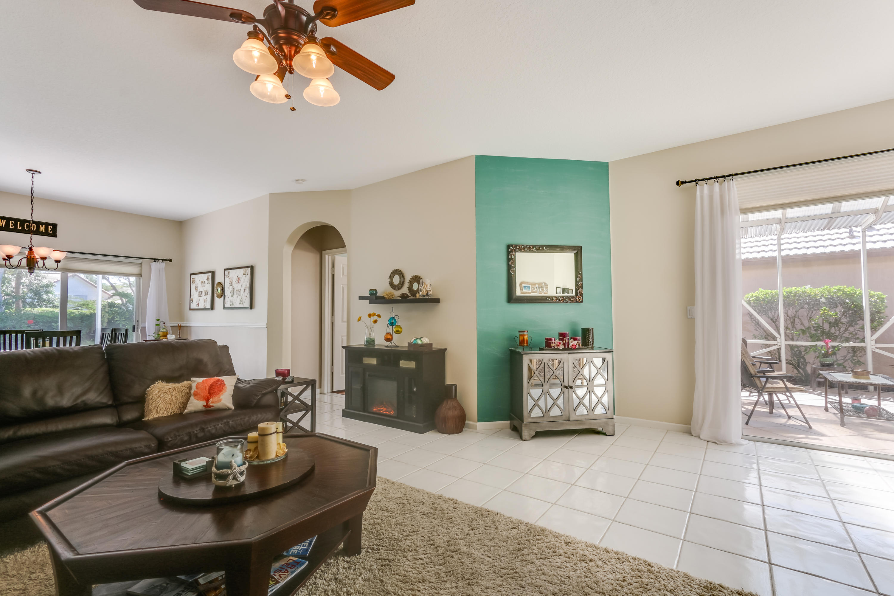 A true beauty!! 1 story single family home with a great split floor plan and open living room, 3 bedrooms (one bedroom set up as an office/den) 2 bath, and 2 car garage with high tech garage floor-tiles and electrical system generator back-up, immaculate clean & cozy nothing-to-do home, move-in ready! tiled & laminate floors and all neutral paint, remodeled kitchen with granite counter-tops and SS appliances, newer AC unit, Master bedroom with large walk-in closet , custom bath with dual sinks, separate shower & Jacuzzi bath tub. Two screened & tiled back & side patios, back patio has retractable awning. Very peaceful community, located in a desirable vacation like setting close to all shopping and highway (be sure to click & view the matter-port video link) River Bridge is a delight: