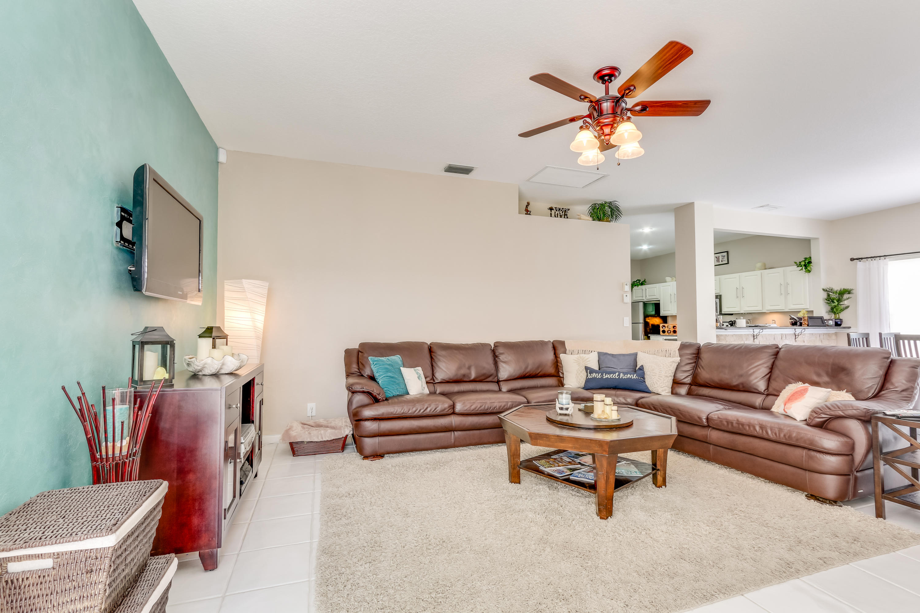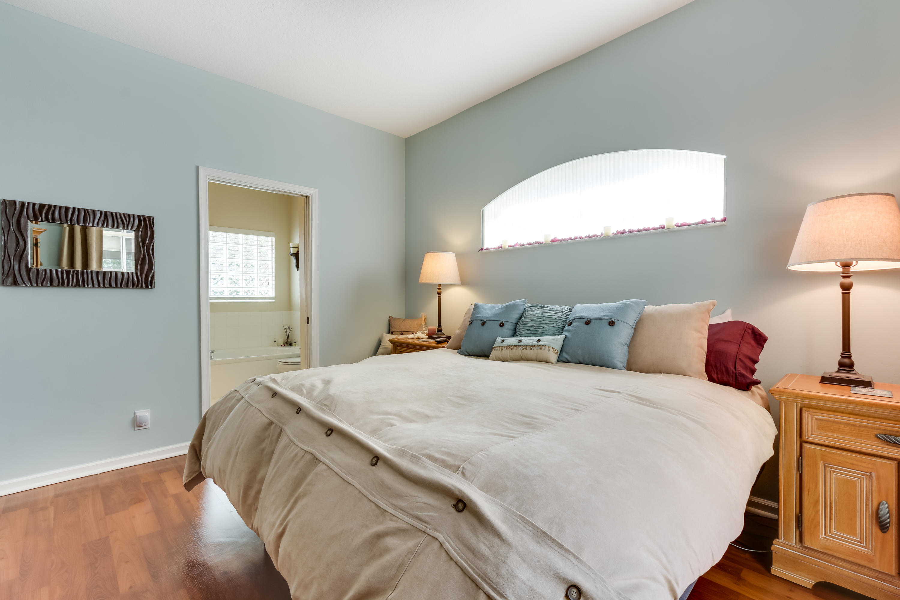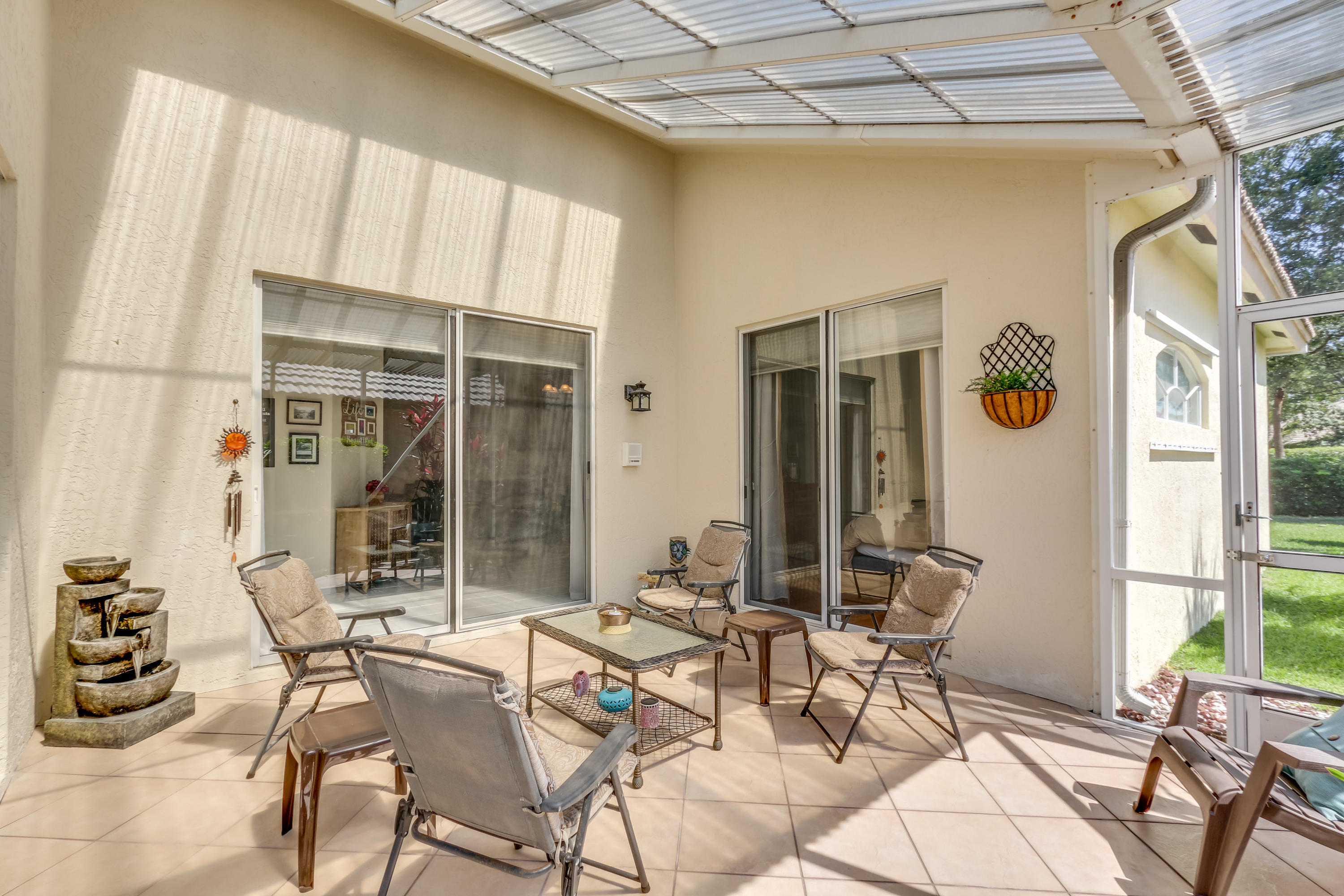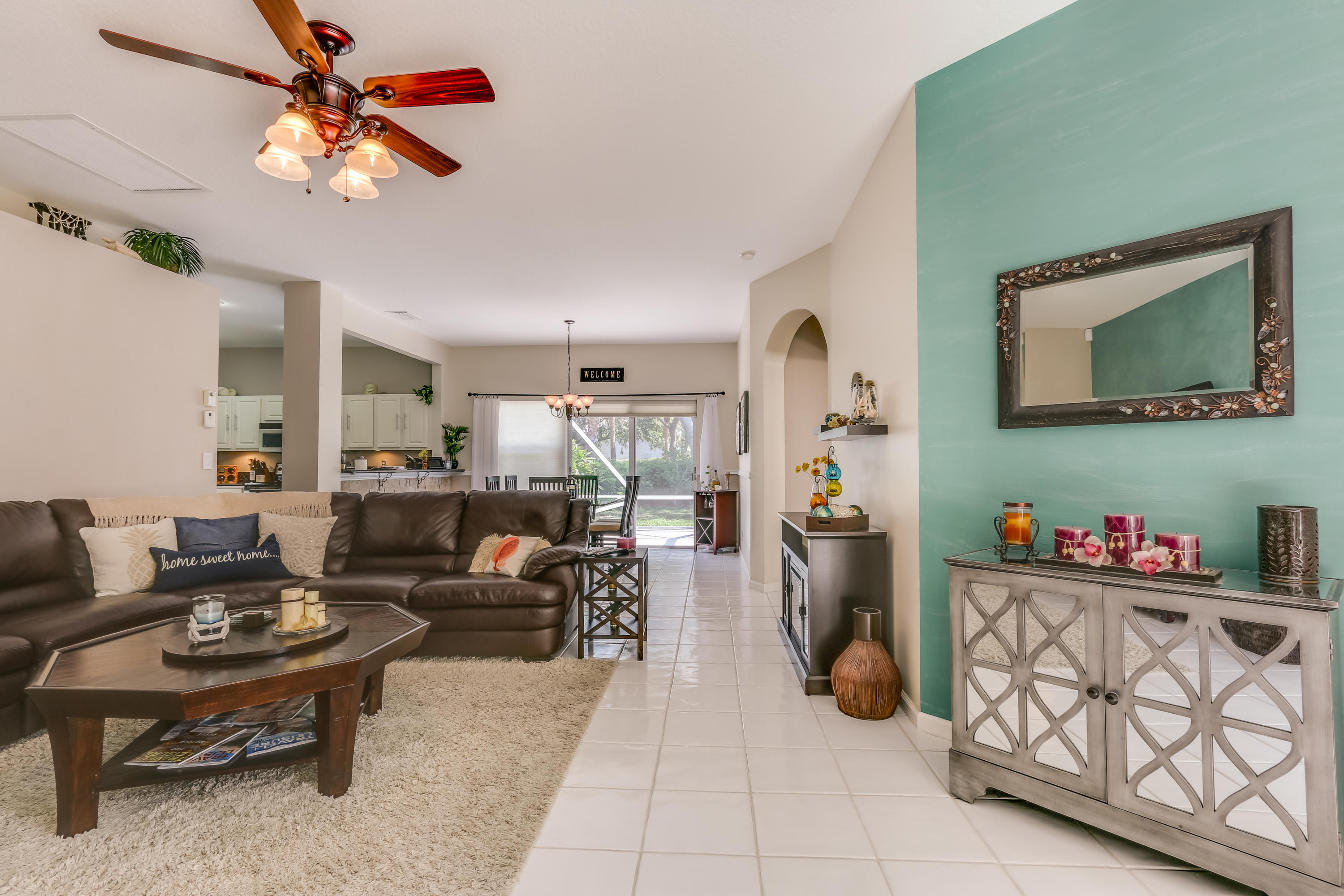 A true beauty!! 1 story single family home with a great split floor plan and open living room, 3 bedrooms (one bedroom set up as an office/den) 2 bath, and 2 car garage with high tech garage floor-tiles and electrical system generator back-up, immaculate clean & cozy nothing-to-do home, move-in ready! tiled & laminate floors and all neutral paint, remodeled kitchen with granite counter-tops and SS appliances, newer AC unit, Master bedroom with large walk-in closet , custom bath with dual sinks, separate shower & Jacuzzi bath tub. Two screened & tiled back & side patios, back patio has retractable awning. Very peaceful community, located in a desirable vacation like setting close to all shopping and highway (be sure to click & view the matter-port video link) River Bridge is a delight: