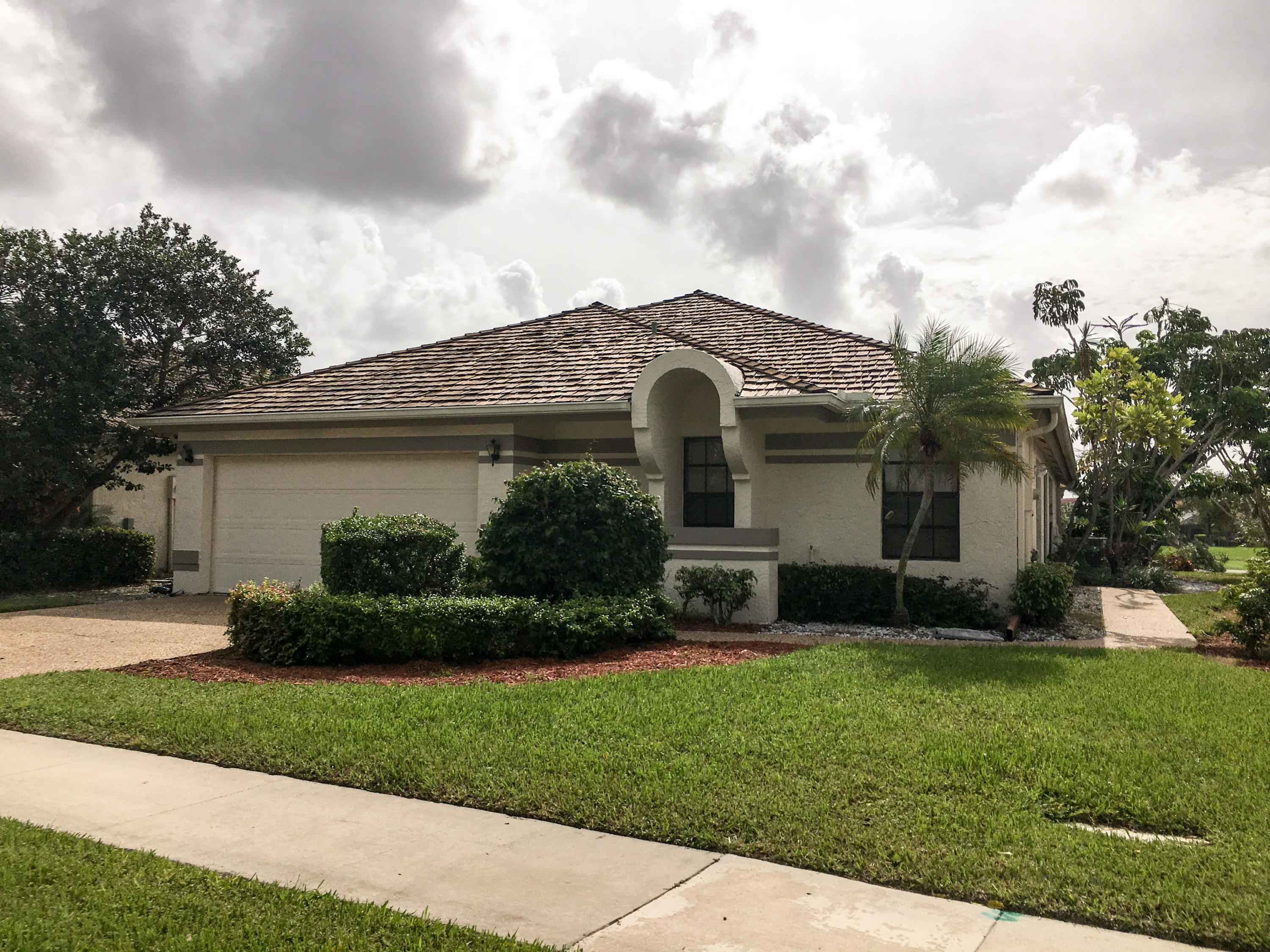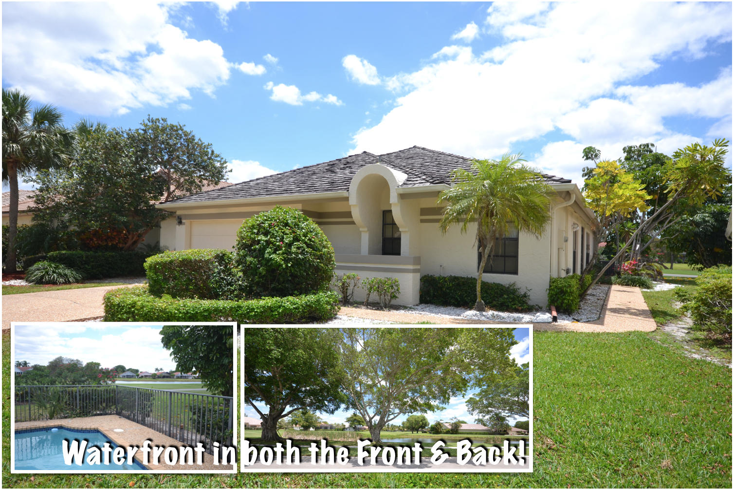 A1 PRIME LOCATION!!! NO OTHER HOMES ACROSS STREET,JUST A FABULOUS LAKE VIEW PLUS WATERFRONT IN BACK TOO! BACKS TO THE 9TH FAIRWAY OF THE LAKES GOLF COURSE IN BOCA WOODS COUNTRY CLUB! LIGHT & BRIGHT, 31 FOOT GREAT ROOM, DOUBLE DOOR ENTRANCE TO MASTER SUITE W/LARGE PRIVATE BATH W/SEPARATE TUB & SHOWER, 2 CAR GARAGE, HEATED POOL WHICH WAS RECENTLY RESURFACED, RICH CEDAR SHINGLE ROOF & MUCH MORE! COME & SEE FOR YOURSELF! GOLF EQUITY MEMBERSHIP MUST BE PURCHASED WITH THIS HOME - BOCA WOODS FEATURES 2 CHAMPIONSHIP GOLF COURSES-DRIVING RANGE - PUTTING GREENS-TENNIS COURTS,FINE DINING- FITNESS CENTER-PROFESSIONAL INSTRUCTORS-LARGE CARD ROOMS-BOOK CLUBS-VALET PARKING FOR OWNERS & GUESTS-GREAT ENTERTAINMENT-TRIPS + SO MUCH MORE. $30,000 FULLY REFUNDABLE WHEN YOU SELL + $30,000 INITIATION...CONTINUED