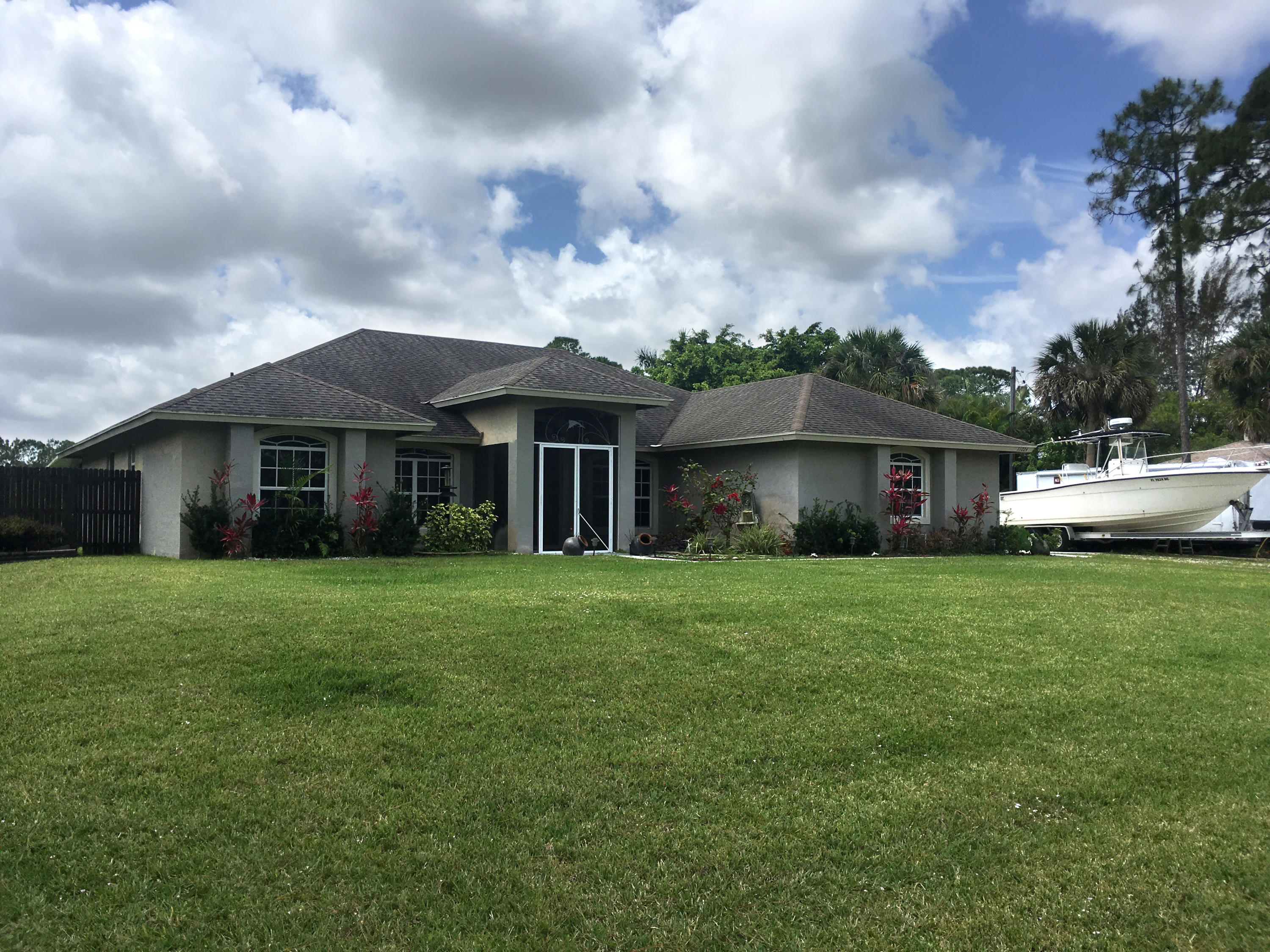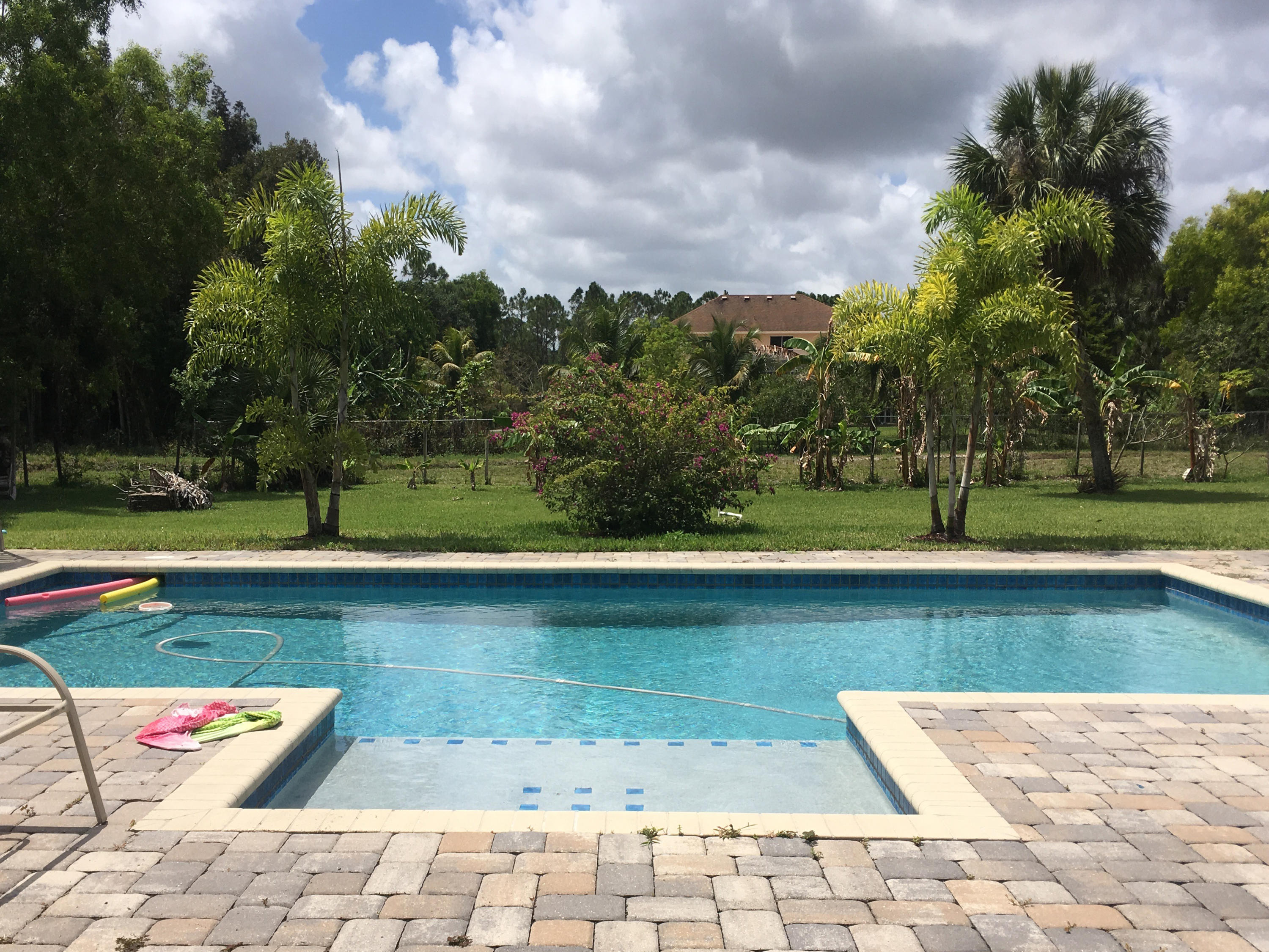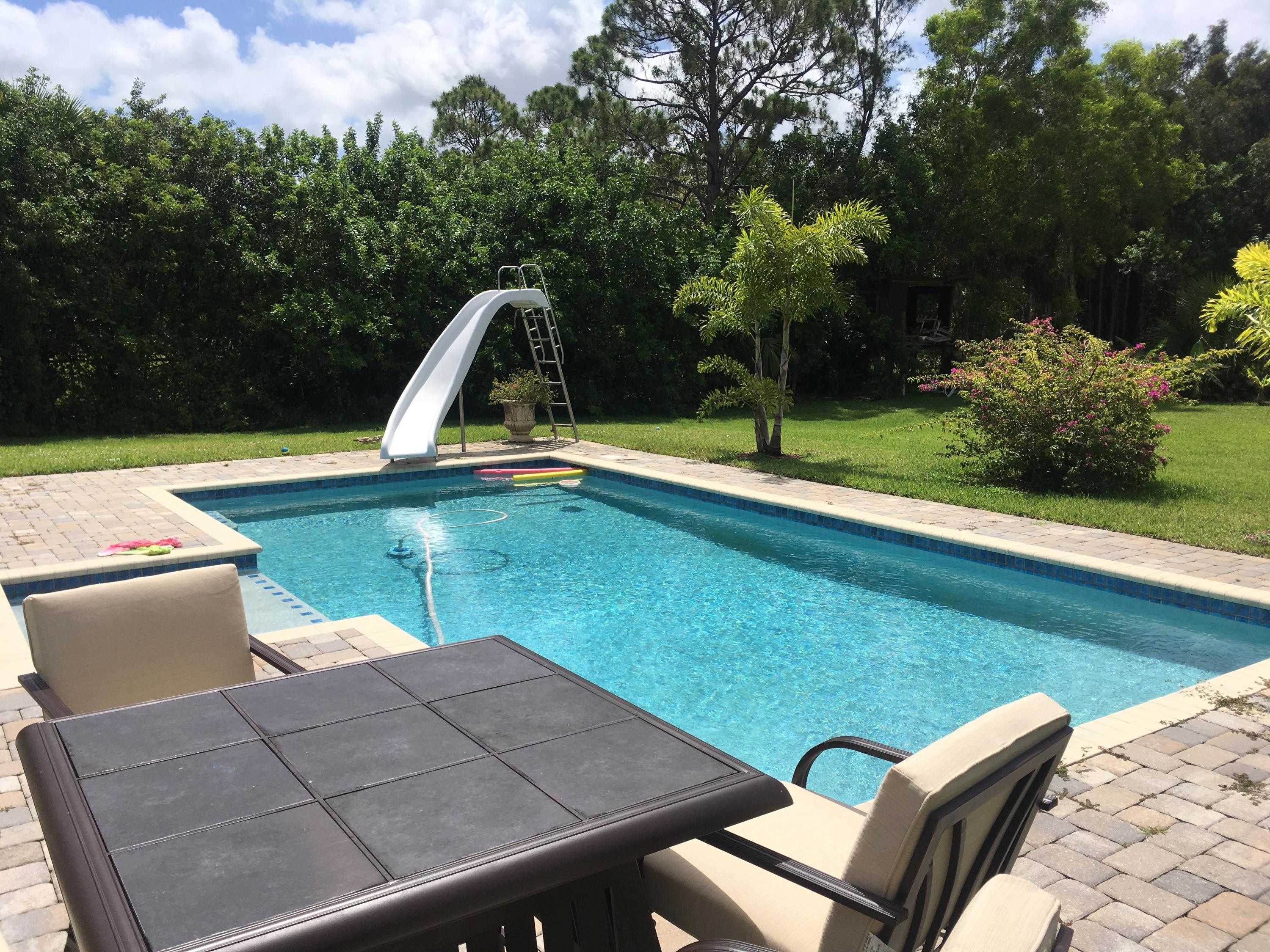 Beautiful 4 bedroom 3 full bath CBS home on 1.25 acres in the Acreage. The home sits on a paved road East of Royal Palm Beach Blvd. A refreshing salt water pool was recently installed in 2014 with a relaxing sun shelf. The large chef's kitchen has granite countertops, stainless steel appliances and plenty of cabinet space. There are original hardwood floors in all the main living areas. The home has a formal dining room and dedicated office. The master bedroom has two closest and a separate tub / shower. The property is fully fenced in and sits on a canal that's perfect for irrigation. Please note that the electric gate will not convey nor will the pol heater. Those belong to the tenants.