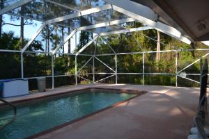 Spacious 4/3 pool home with den on 1.31 acres with laminate and tile floors. Kitchen, family room and dining room are off the pool making the home a great place to entertain with a covered patio. Garage has been converted to theatre room with plenty of storage available. There is a 12 x 24 shed for all exterior necessities. Washer and dryer do not convey.