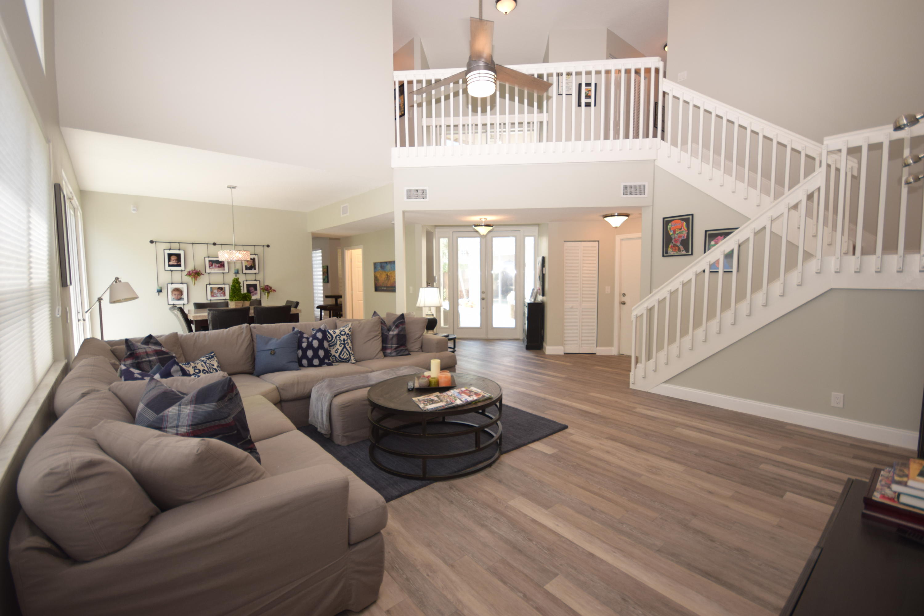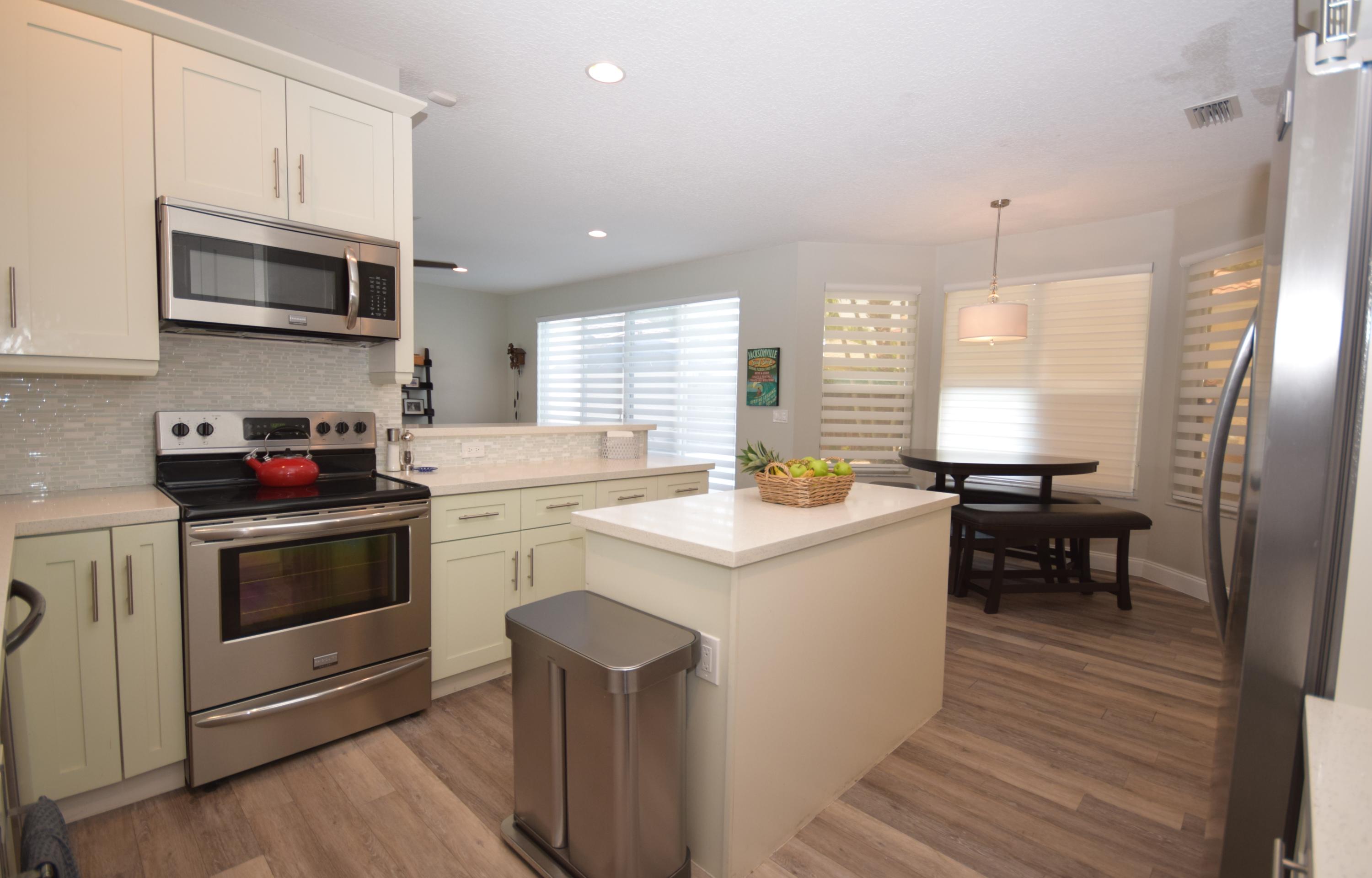Spectacular courtyard home in highly sought after Sonata/Mission Bay. Beautifully renovated - Kitchen features trendy white wood cabinets, quartz countertops, ss appliances, custom glass backsplash and breakfast bar. Functional floorplan is perfect for living/entertaining/guests. Downstairs has beautiful gray floors, custom window treatments, half bath, impact front door, vaulted ceilings, tinted windows, a/c 2016. 2 large living areas, kitchen, dining room and guest house all open to salt water pool and c