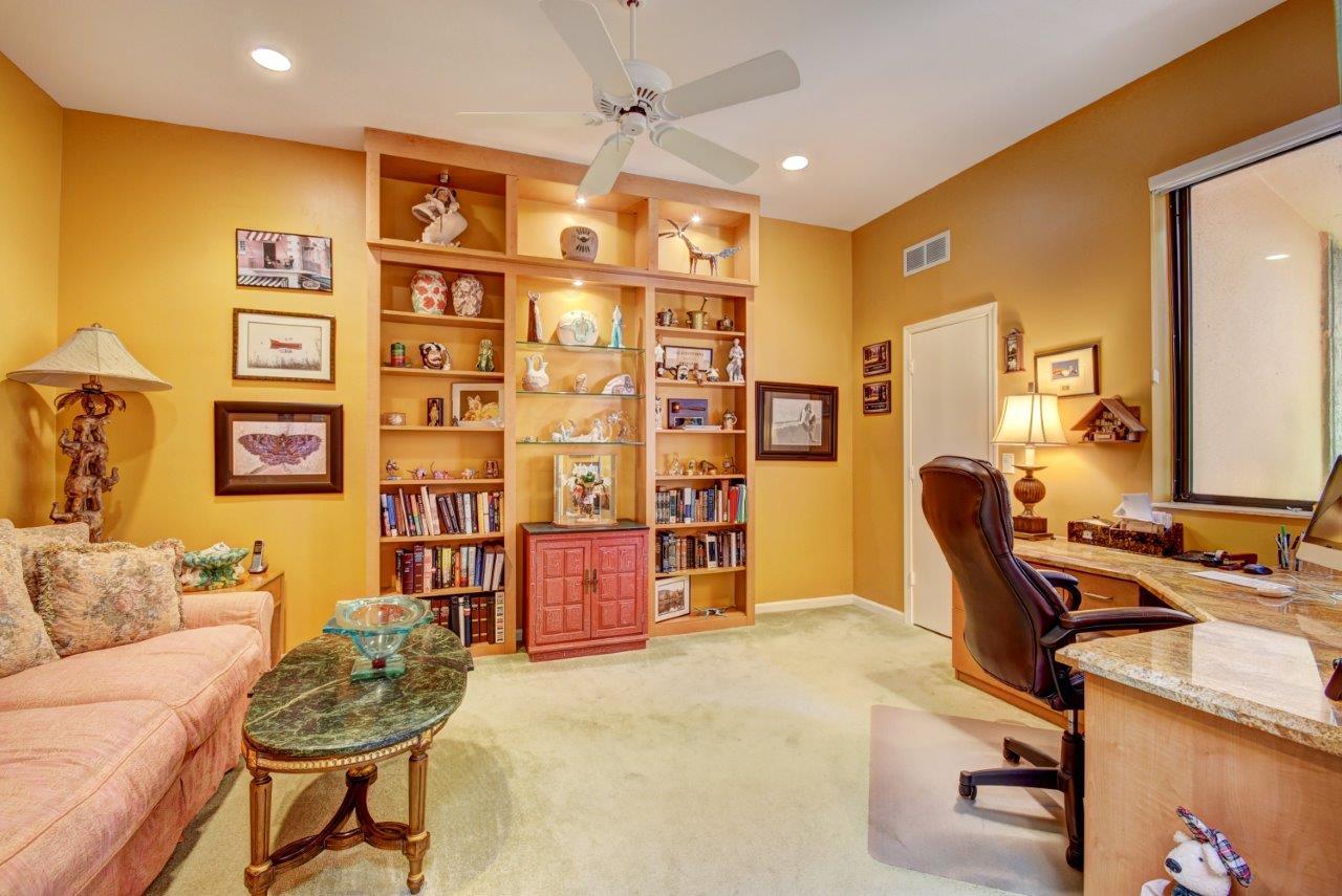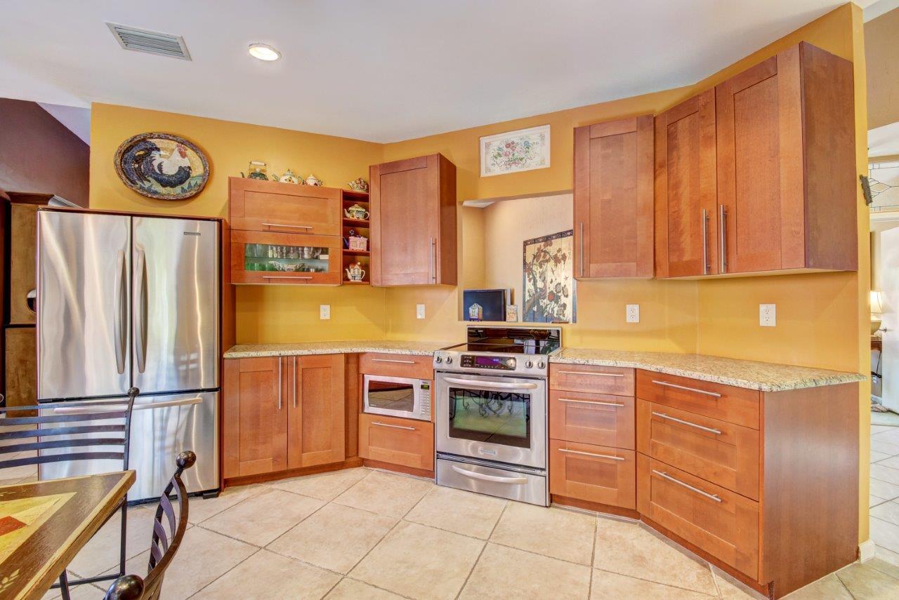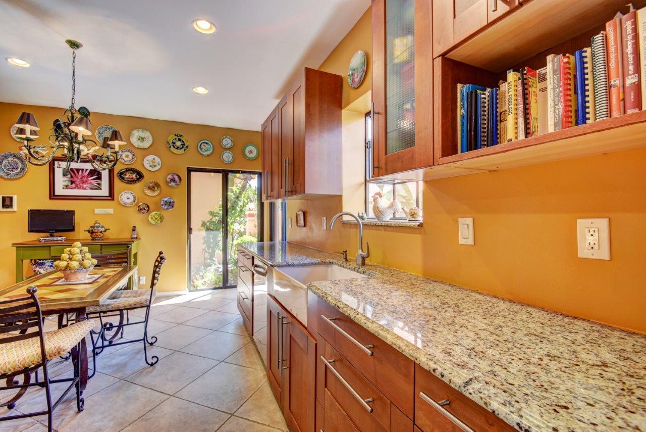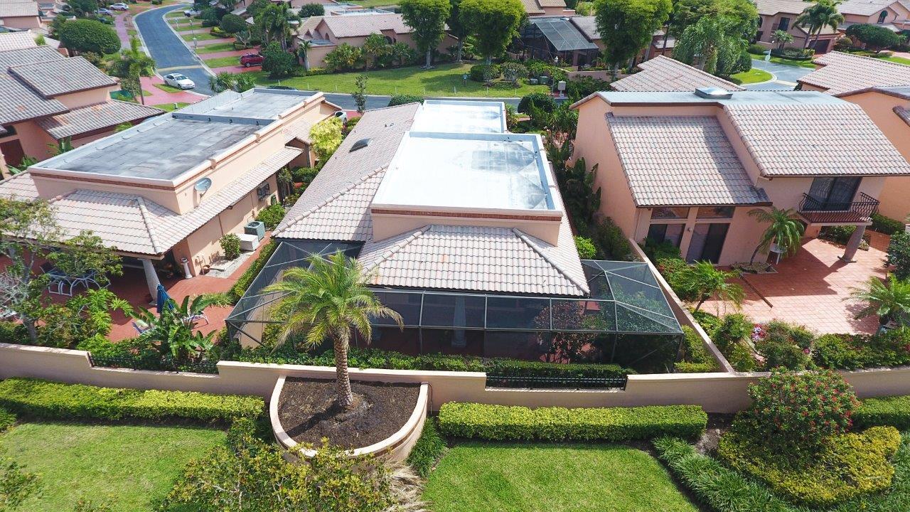 Located in beautiful Villa Flora at Boca Pointe, this spacious one story 3/2 features high ceilings, skylights, and walk-in closets with excellent built-ins. The spacious, warm and inviting kitchen has been recently renovated with granite counter tops, solid wood cabinets, large farm sink, stainless steel appliances and walk-in pantry. The third bedroom can be used as a den and features a built in desk, bookcases, and walk-in closet. The bathrooms are beautifully renovated. Master bath has a dual sink quartz vanity, soaking tub and skylight. This home has new flat roofs, is well maintained and priced to SELL!The club at Boca Pointe is a private, non-mandatory equity country club with sports and fitness complex, pool, card room, social activities and dining room.