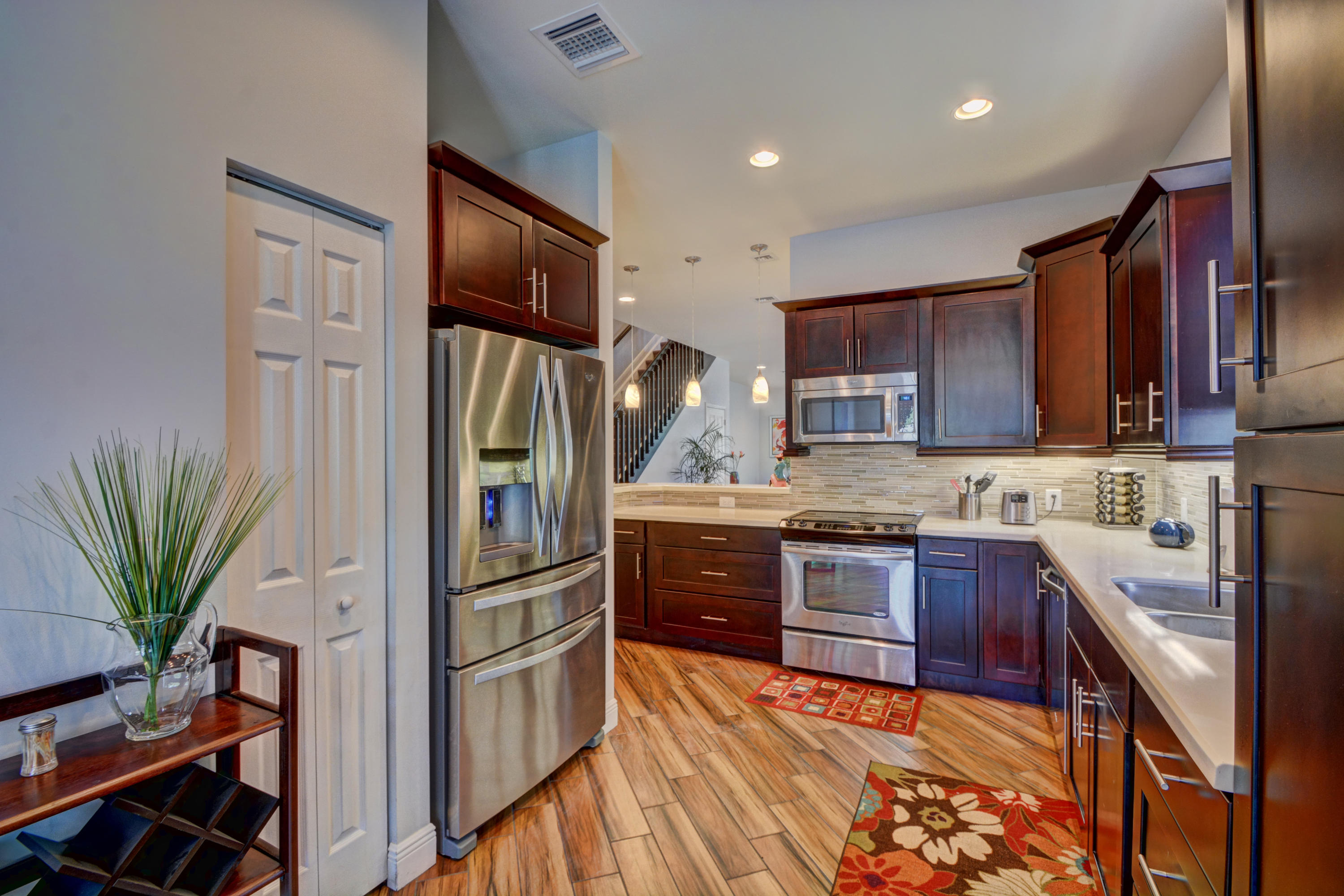 OPEN HOUSE SATURDAY 06/17..Amazing fee simple Townhome adjacent to Victoria Park. This interior designed,3/2.5 with 1 car garage is better than new with over $30K of optional upgrades.Home has 2 patios, fenced backyard,gourmet kitchen with s/s appliances & quartz countertops, wood cabinets & custom backsplash. Plank tile on the 1st level. 2nd floor is concrete(not wood)The master bedroom,with custom room darkening drapes,has a walk-in fitted closet.Master bath,with dual vanity sinks, has a glassed in shower and a juccuzzi tub. Dual sinks & designer mirrors complete the 2nd bathroom.All hurricane impact windows through out.Backyard is fenced & private.Your 1 car garage has painted flooring & upgraded H20 heater.See supplement!