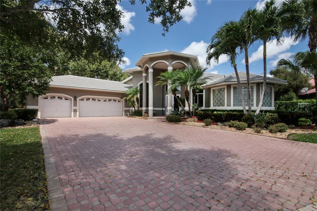 Newly Renovated Modern Waterfront Home in Prestigious Gated Eagle Trace on oversized Cul-De-Sac pie lot. 1 story bright open floor plan w/ lots of windows,large Renovated island kitchen w/new granite 2017,cabinets,SS Appliances,sub zero.New Master Bath 2017,Hall Baths 2017,Neutral tones & tile, hardwood beds, New Roof 2017. Entertainer's paradise patio w/summer kitchen & fire pit, Huge Backyard, 500 gallon gas tank underground, pool w/raised spa overlooking lovely water.One of largest lots in Eagle Trace