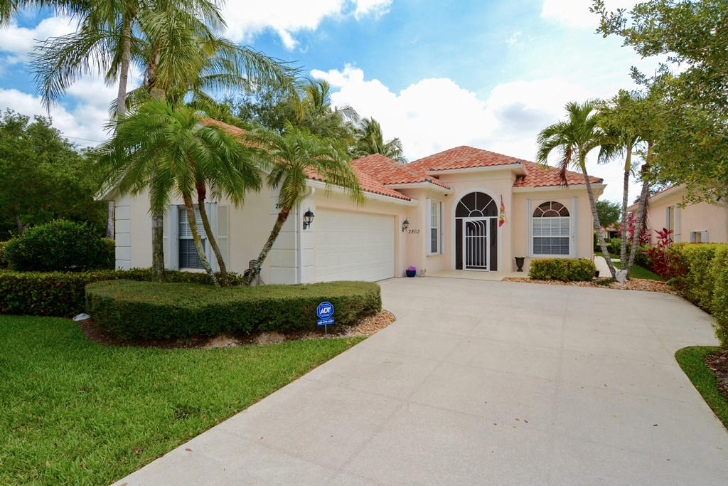 This Pristine Oakmont Model has A Caged Swimming Pool & has been Stylishly Updated with a Unique Flair in Desirable RiverWalk, A 24 Hour Manned Gated Community in One of the Most Convenient Locations in Palm Beach County! This Lakeside Gem has Highend Professional Interior Decorator Upgrades & Stunning Features that make this Residence a One-Of-A-Kind Opportunity! The Lush Landscaped Grounds enhance the Motor Court that leads to the Screened Entry that opens to the Foyer & The Great Room with 12 Ft. Ceilings, an Upgraded Full Wall Entertainment Center ready for a Flat Screen T.V. both with 16'' Porcelain Tile on the Diagonal that transitions with a Decorative Tile Border into the Designer Faux Wood Plank Style Porcelain Tile on the Diagonal Dining Area with a Stunning Designer Fixture,