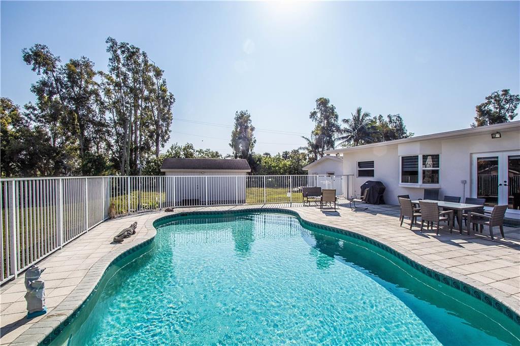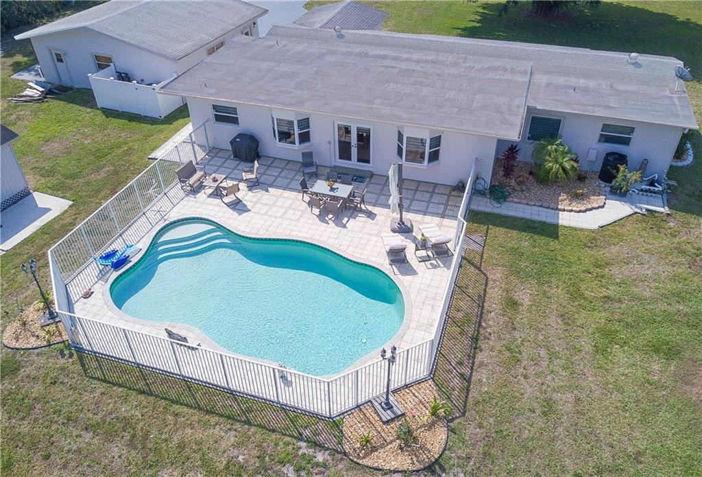 Discover a little gem in Florida Fruit Land horses community.Impeccably designed and completely updated 1 story 3bed/2bath over 1acre featuring the most desirable open layout.Enjoy a phenomenal open kitchen offering unlimited upgrades such as quartz countertops, backsplash, top of the line SS appli,recessed lighting,wine cooler.Upgraded bathrooms.Impact windows and doors.New AC/water system/septic tank.Detached over-sized 3car garage with new doors/floor/built-ins. Heated pool.Detached Shed.Fruit Trees.