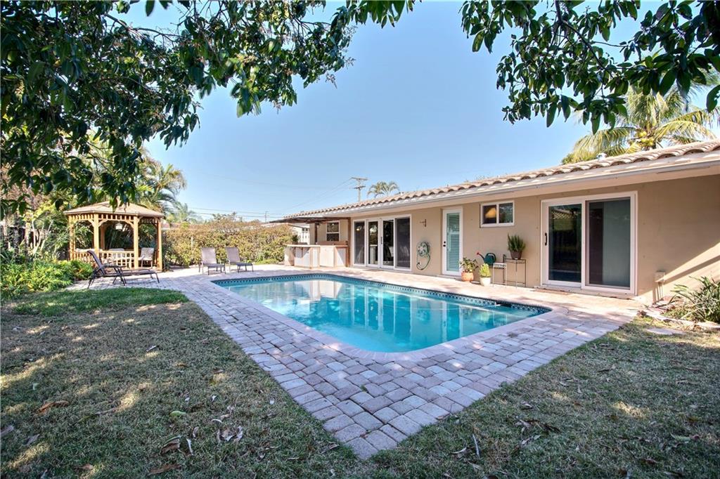 Beautifully updated 3bed/3full bath home in Imperial Point neighborhood. Featuring an open kitchen with quality wood cabinetry, S/S appliances, and granite countertops, open to the dining and living area. Tile and wood flooring throughout, hurricane impact windows, doors, plus a pavered circular driveway. The gazebo, outdoor bar, and cabana bath by the inviting pool make this an entertainer's paradise. Wonderful curb appeal w/covered entry. Trees and lush greenery surround this home. Make it your own!!