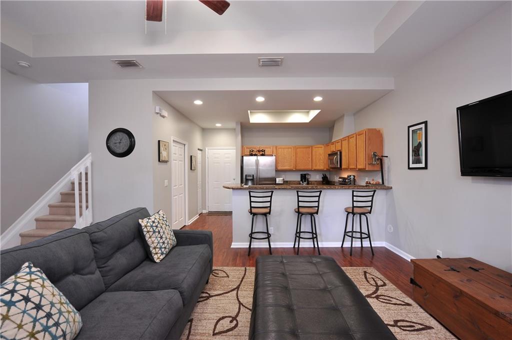 Move-in Ready, Corner Townhome in a Gated community! Completely upgraded open floor plan with large kitchen, granite counter tops and all new stainless steel appliances. High ceilings, crown molding, impact glass windows and doors. Two car garage and patio in back. Master bedroom suite has private balcony, walk-in closet and 2 sinks in bathroom. Convenient location. Minutes to I-95, downtown, shops and restaurants!