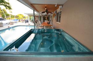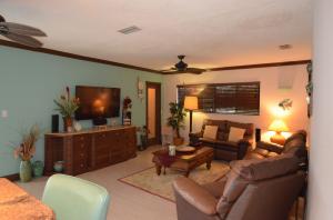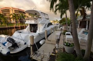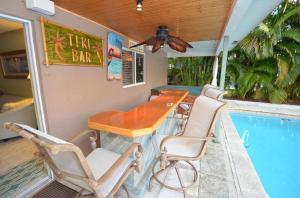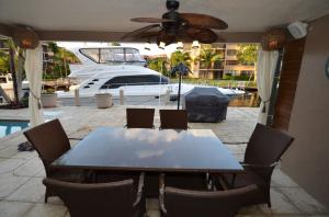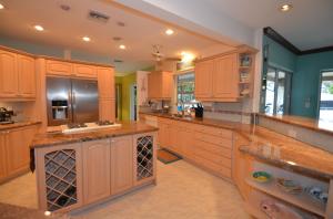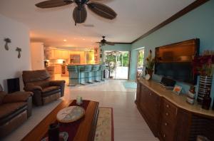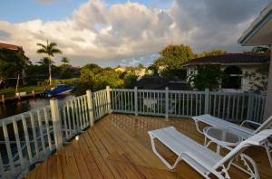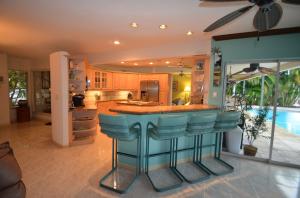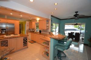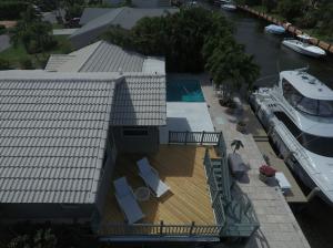 Tommy Bahama influenced home. NO HOA! Remodeled open floorplan. Large kitchen w/ gas island stove and bar w/ Granite Counter tops, Stainless Refrigerator and Microwave. The upstairs has a large room that could be used as an Entertainment room, There is a large 3rd bedroom/ full bath along with a Private Office w/ a view down canal. The upstairs has separate outside stairs and private entrance w/ a deck overlooking the canal and Intracoastal waterway. Pool has new diamond brite, new pump/filter, pool cleaning system. Master bedroom has bamboo ceiling, indirect lighting, a bathroom. All bedrooms are about 16'x14'. Separate Living Room, Dining Room and Den downstairs. Guest bathroom off the den. 80' waterfront and 50' of Dockage easily capable of handling a 58' yacht.