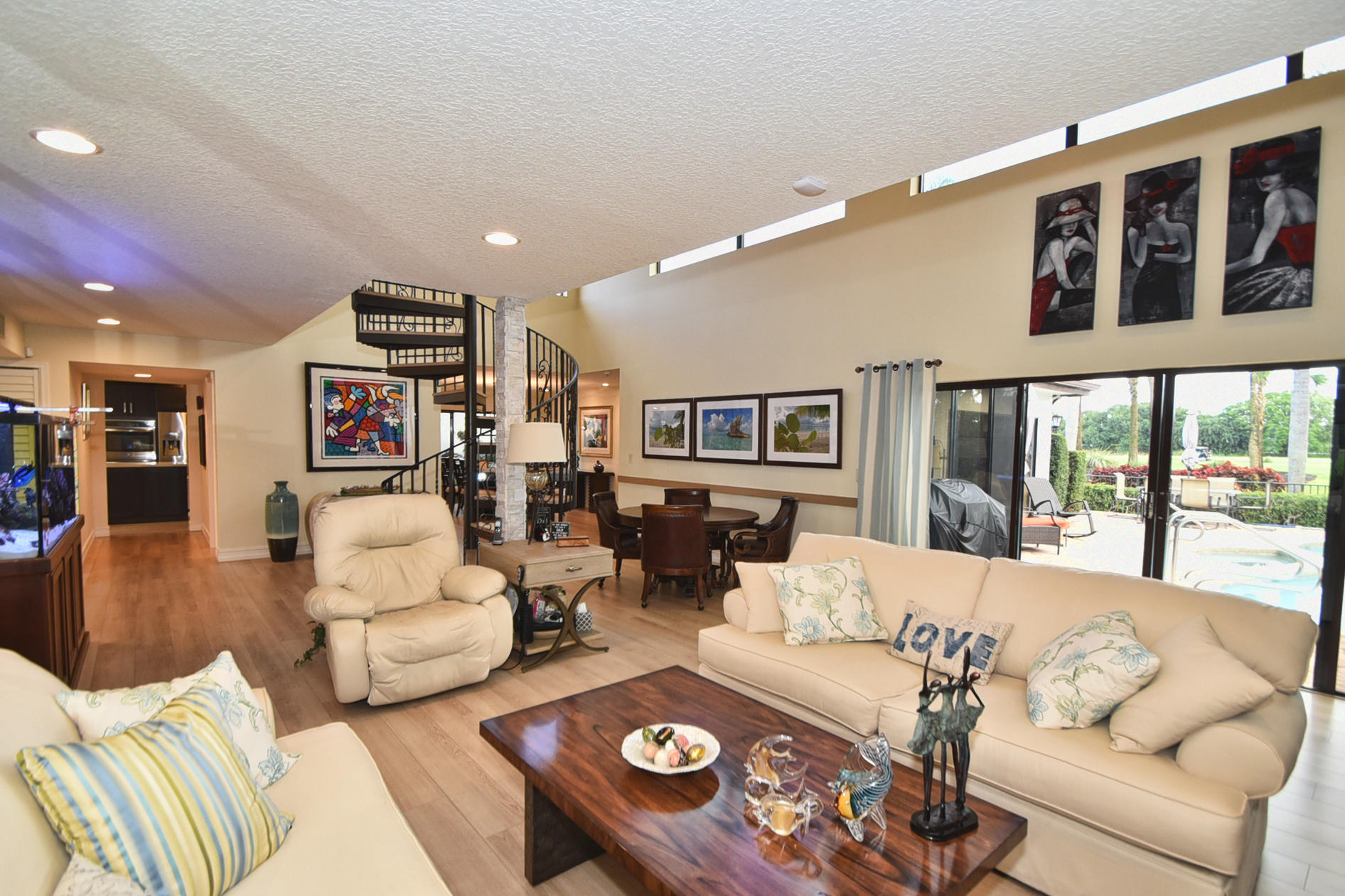 Move right into this 4 BR, 3.1 BTH pool home that was recently renovated.Master bedroom on first floor along with his and her own offices (or bedroom). Fabulous state of the art kitchen with quartz countertops. Open floor plan with floating spiral staircase to second floor that has 2 additional bedrooms and its own extra seating area. Redone pool area that overlooks the Fazio golf course on the 11th hole! Do not miss this opportunity! Mandatory membership to Boca West Country Club $70,000.
