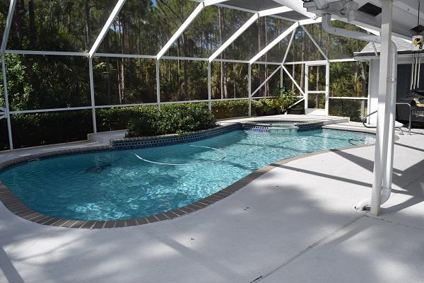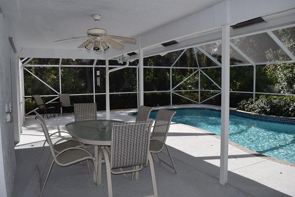 Relax and enjoy the screen enclosed pool patio sanctuary with no neighbors in sight on this 1.15 acre lot. Open the four sliding glass doors to hear the spa waterfall into the pool throughout the living areas and master. This split floor plan home has open living areas with 14-foot vaulted ceilings. Formal living and dining rooms flow into the kitchen with a breakfast nook and large granite counter with room to seat four. Enjoy cool nights by the family room's wood-burning fireplace. Master suite boasts his and hers walk-in closets, separate shower and jetted tub, and dual vanities. Second bedroom has large bay window area overlooking the shady back yard. New energy efficient A/C in 2010. New roof in 2011. Pool resurfaced irrigation system updated in 2013.