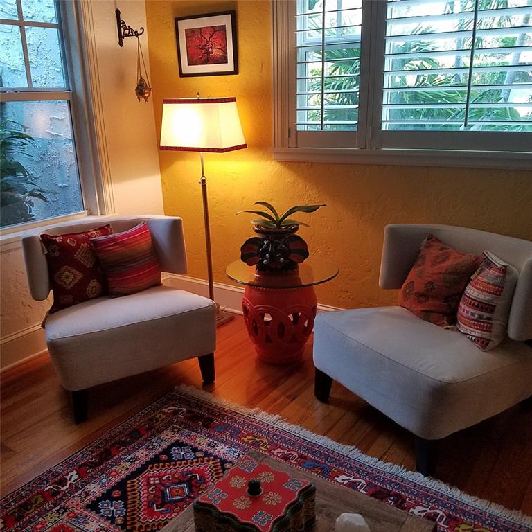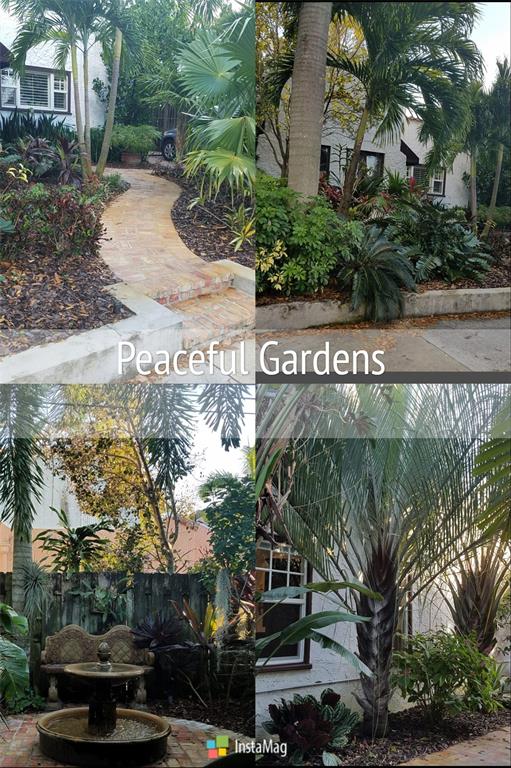 This beautiful home is full of character, from the moment you pull into the driveway it is like being in a scene of a romantic novel, this Spanish Style Jewel has Chicago Brick Driveway, Iron gate, gorgeous and well maintained gardens, a fountain and benches, wood floors, granite countertops in kitchen, wood cabinetry, lots of natural light which can be easily adjusted by white plantation shutters, most windows are impact glass, bring your most discriminating buyers, they will not be disappointed!