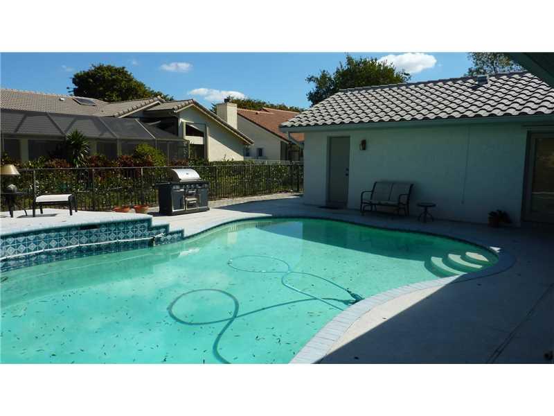 NEW ROOF & IMPACT WINDOWS ON FRONT WINDOWS!! BEAUTIFUL 4 BED / 2.5 BATH LARGE POOL HOME IN GATED COMMUNITY OF EAGLE TRACE GOLF ESTATE HOMES. REMODELED KITCHEN HAS MANY EXTRAS INCLUDING OVERSIZED COUNTERTOP, WET BAR,WINE RACK, AND PULL OUT PANTRY SHELVING. FIREPLACE IN LARGE FAMILY ROOM. WOOD FLOORING IN DINING AND LIVING ROOMS. ALL BEDROOMS ARE LARGE AND MASTER BEDROOM HAS TWIN WALK-IN CLOSETS AND TRAY CEILING. CABANA BATH, FRENCH DOORS LEAD OUT TO POOL AREA. HALF OF GARAGE CONVERTED TO OFFICE.