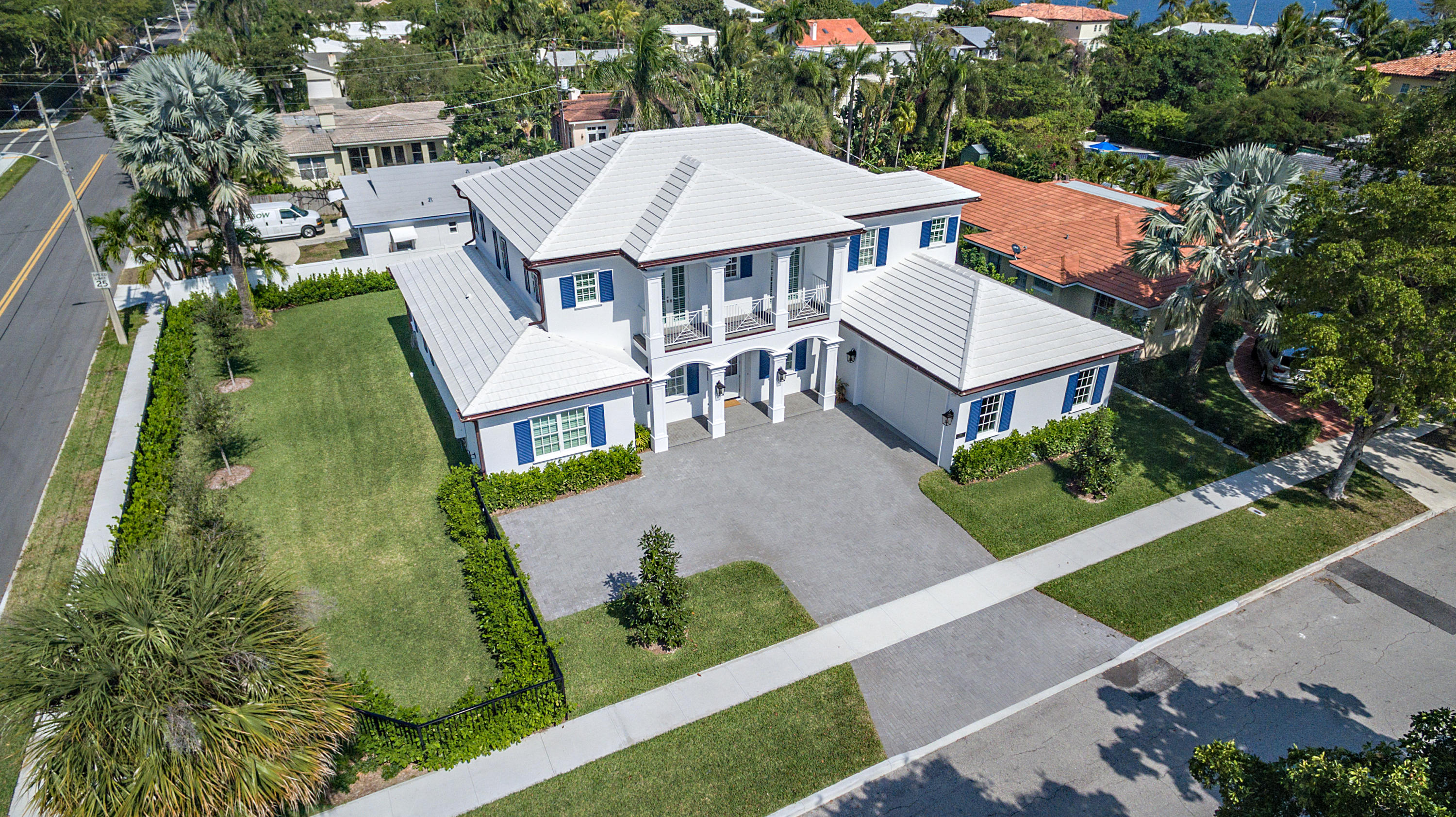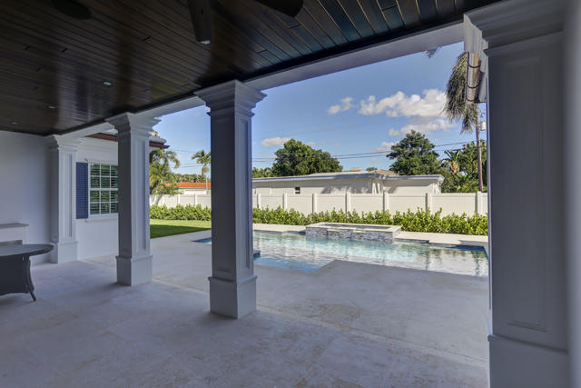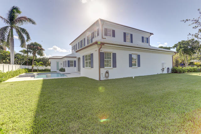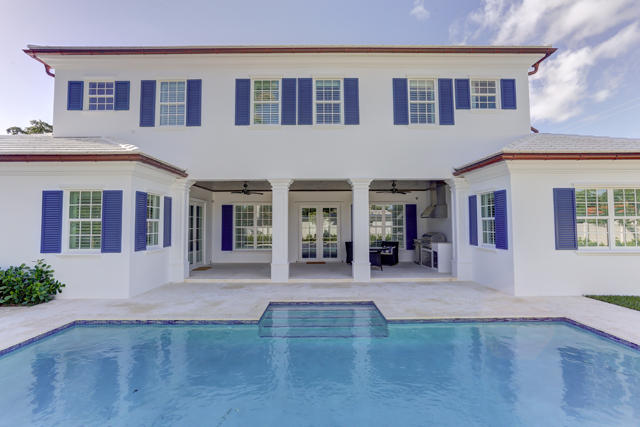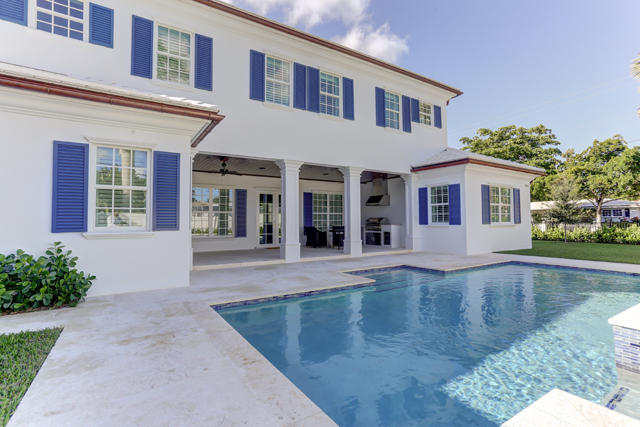 Priced to Sell!! Exceptional new construction home on oversized lot, one block from the Intracoastal Waterway. This 5 Bedroom, 5 Bathroom British Colonial boasts over 5000 sq.ft and features Thermador appliances throughout, 48in. gas range with double ovens, hardwood floors, hurricane impact glass,a luxurious first floor master suite, and two-car garage. The gracious covered loggia with summer kitchen overlooks the gas heated, salt water pool w/Jacuzzi.