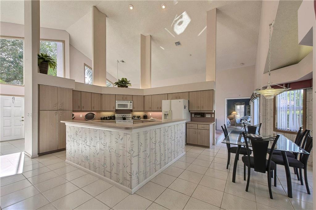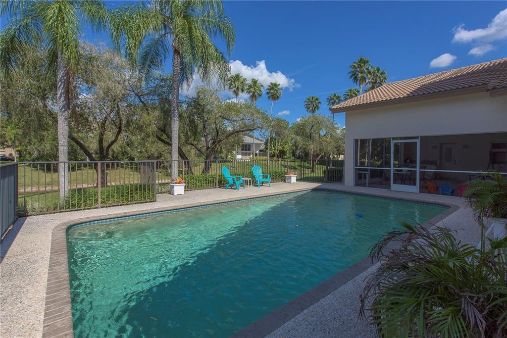 Classic contemporary on waterway in quiet cul de sac of custom homes. Fenced, open pool and 20 ft roofed lanai. Timeless architecture, soaring cathedral & vaulted ceilings, clerestory windows. Triple split bedroom floor plan; every room spacious, Priced below market, impeccably maintained, decorate to your own taste & style. Foyer entry, large formal living room & dining room, big family room, breakfast area overlooks pool & patio. Huge kitchen, cabana bath. Sewing desk in laundry room.