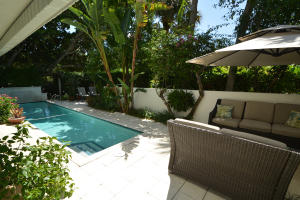 Nestled in one of Boca Raton's most prestigious neighborhoods is this architecturally designed contemporary home just two blocks from the beach & walking distance to shops, Mizner Park & many outstanding restaurants. This updated unique home has 3BD, 2 1/2 BA, courtyard with pool & completely surrounded with exotic plants & foliage makes it totally private. The upstairs loft is light & bright & overlooks the great room & kitchen area. The 22 ft soaring wood plank ceiling, wood burning fireplace & open kitchen with doors opening to the pool courtyard make it perfect for entertaining. The first floor master suite features double sinks, marble shower & huge walk in closet. Across the street is a park with lush landscaping & mature trees making it a very tropical Paradise setting.